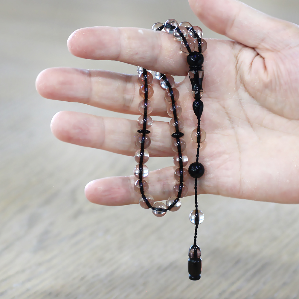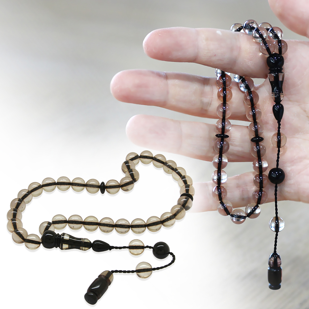 Sistemli Küre Kesim Sürmeli İmame Kombinli Şeffaf Ateş Kehribar Tesbih