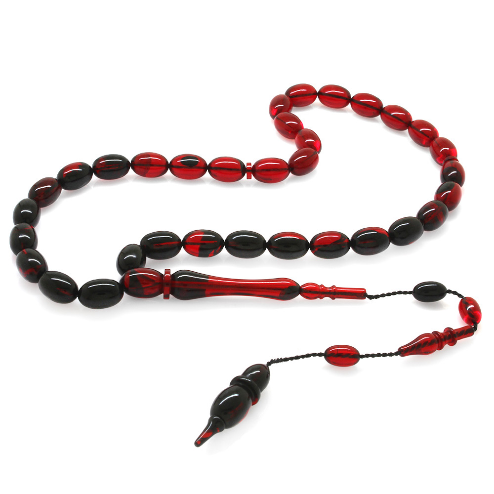 Sistemli Özel Kesim Usta İşçilikli Kırmızı Siyah Hareli Katalin Tesbih