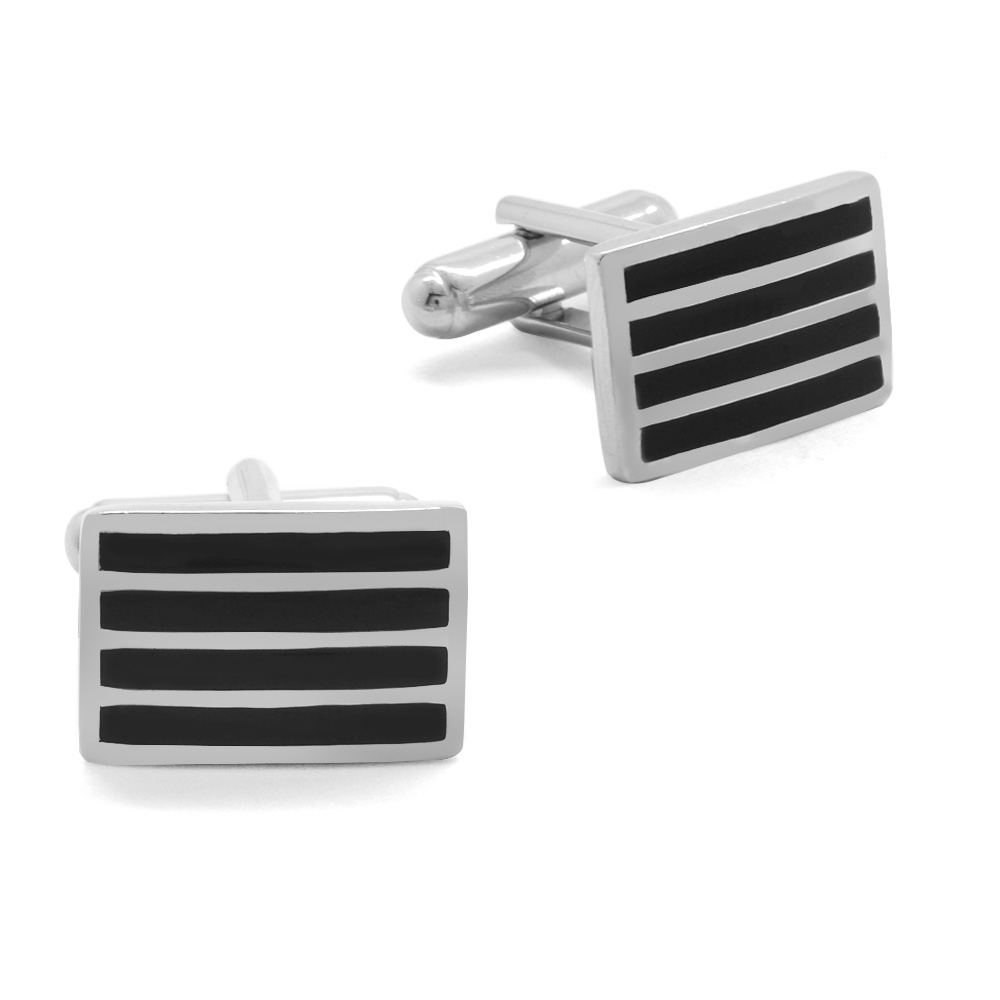 Siyah Mineli Avangarde Tasarım 925 Ayar Gümüş Kol Düğmesi