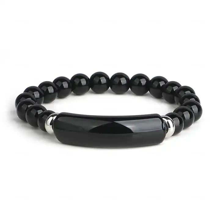 Siyah Oniks Plakalı Küre Kesim Doğaltaş Erkek Bileklik - 1