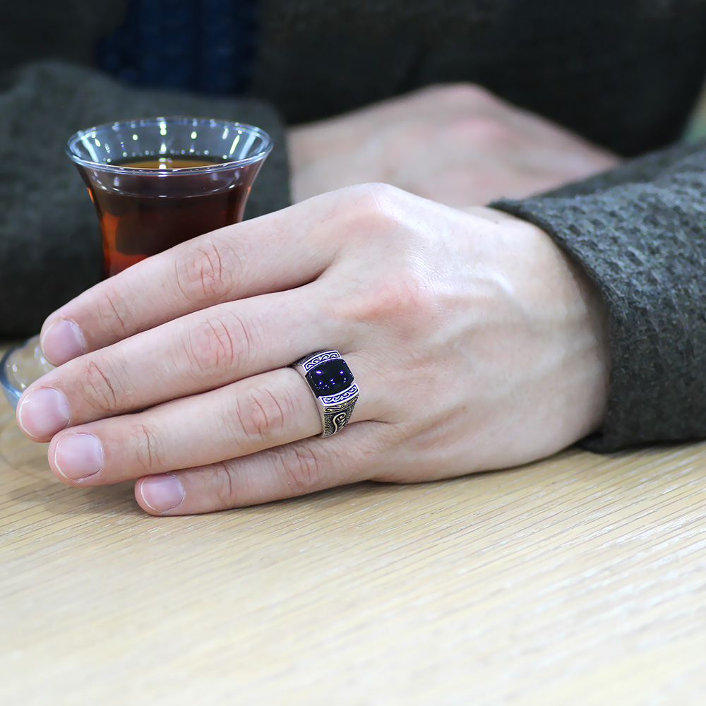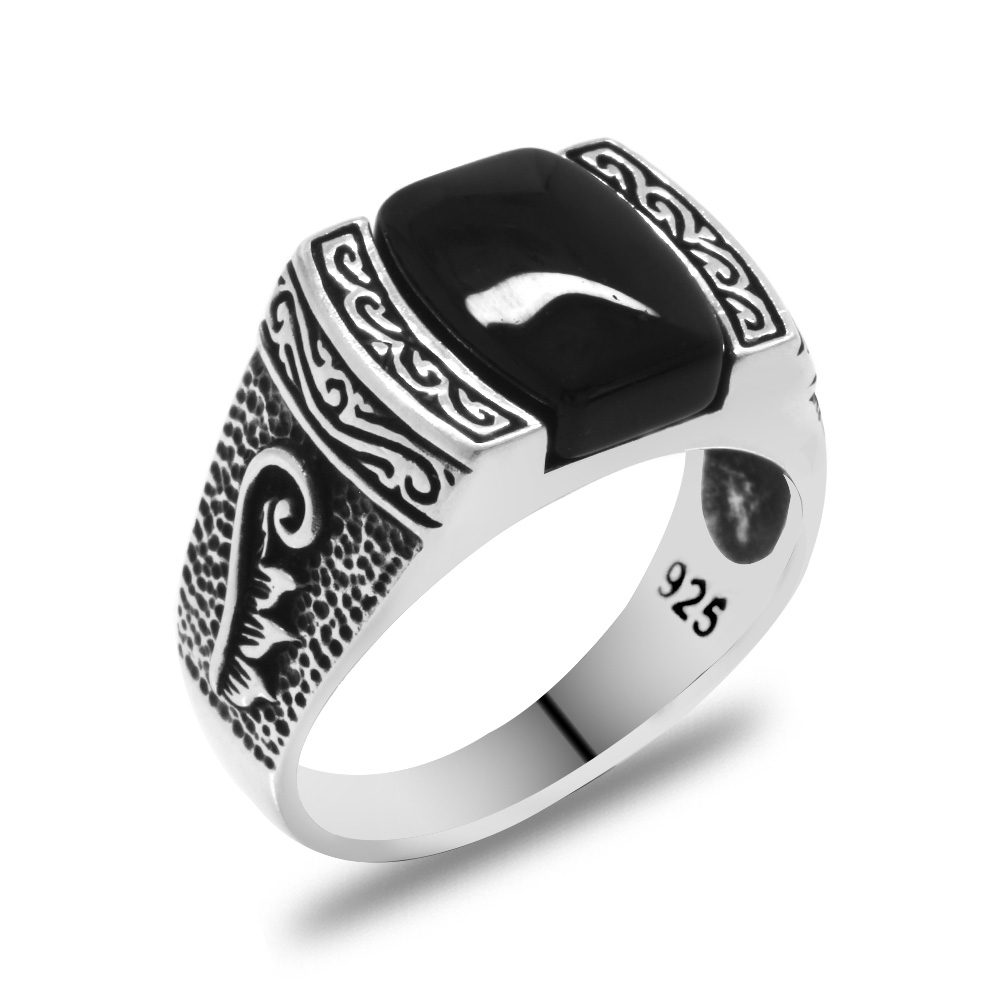 Siyah Oniks Taşlı Tarz Tasarım 925 Ayar Gümüş Erkek Yüzük