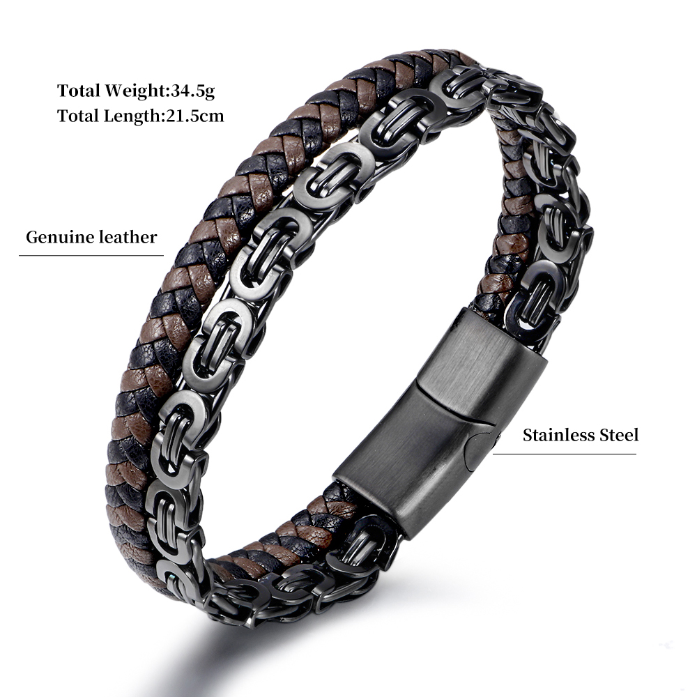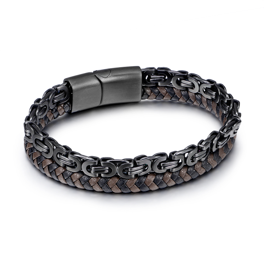 Siyah Renk Kral Zincir Gerçek Deri Örgü Magnetic Tokalı 316L Kalite Çelik Mekanizmalı Erkek Bileklik - 1