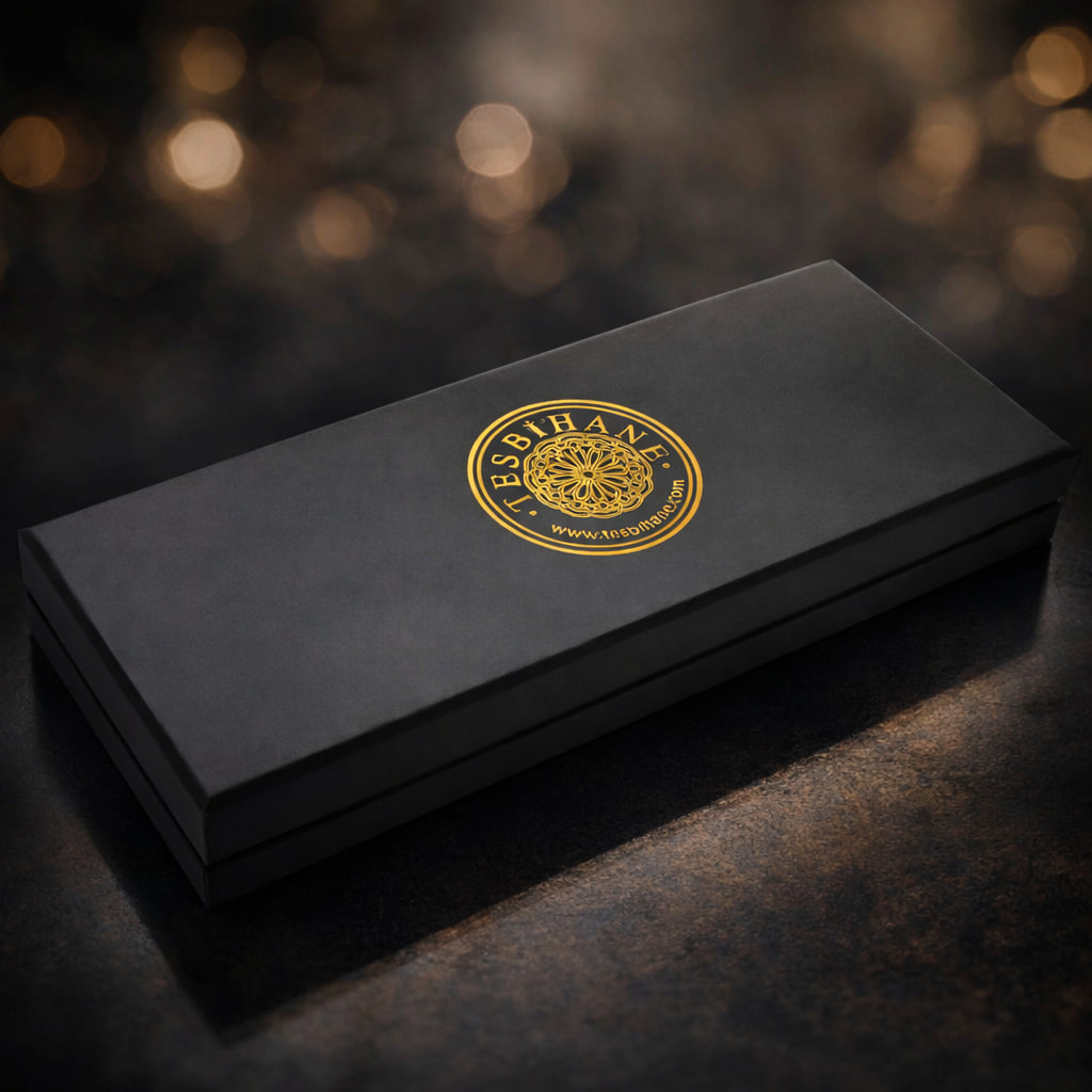 Değerli müşterimiz, sipariş ettiğiniz özel tesbihinizi, tesbihin tüm güzelliğini yansıtan özel tasarım bir kutuda size ulaştırıyoruz. Tesbihinizin şeklini tam olarak alan özel sünger kalıbıyla, kutunun içinde güvenle ve şık bir şekilde yer alıyor. Böylece tesbihiniz, size ulaşana kadar hiçbir zarar görmeden korunuyor. Dilerseniz, kutunun üzerine özel bir mesaj, tarih veya isim yazdırarak, tesbihinizi daha da anlamlı hale getirebilirsiniz. Bu sayede, tesbihiniz sadece bir aksesuar olmaktan çıkarak, size özel bir hatıra haline gelir. Tesbihinizin hem estetik hem de güvenli bir şekilde size ulaşması için özenle hazırladığımız bu özel kutuyu beğeneceğinizi umuyoruz.