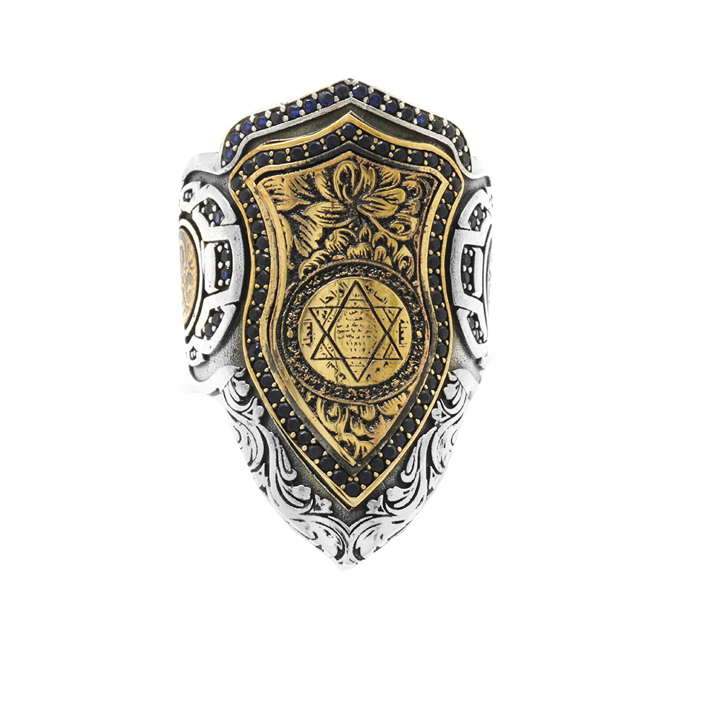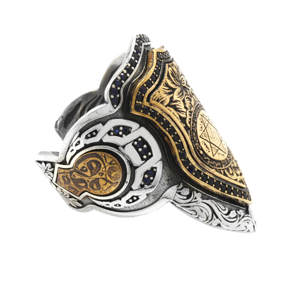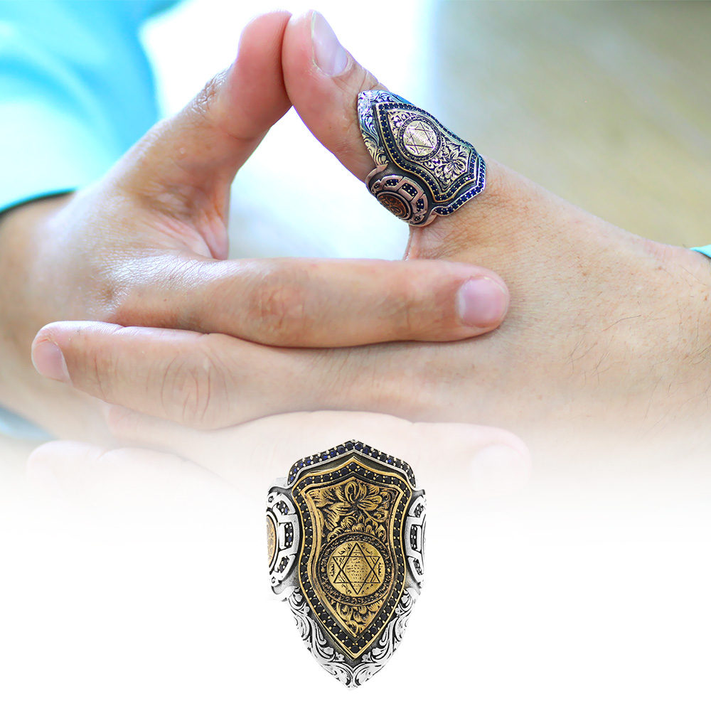 Zirkon Taş Mıhlamalı Mührü Süleyman İşlemeli Ayarlanabilir Ölçü 925 Ayar Gümüş Okçu Zihgir Yüzük