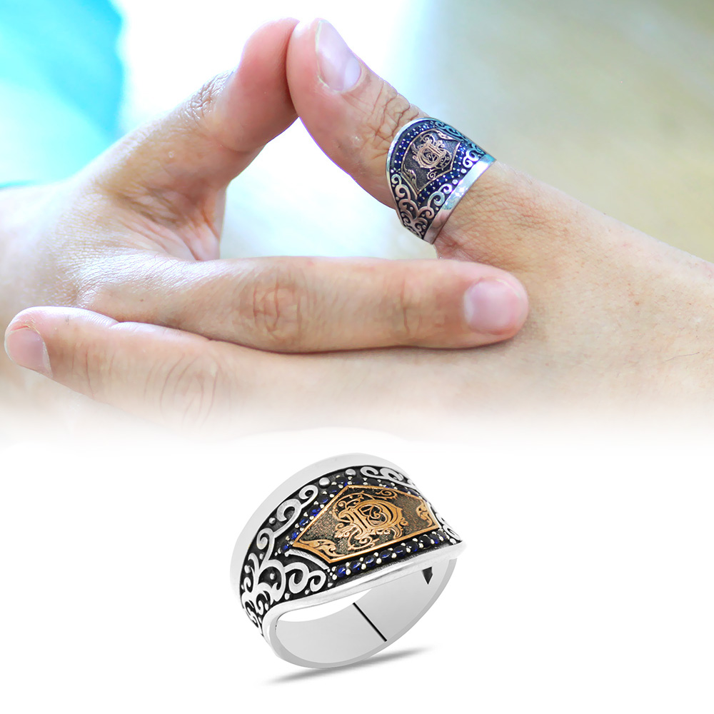 Siyah Zirkon Taşlı Mıhlamalı İsme Özel Harf Yazılı 925 Ayar Gümüş Erkek Okçu Zihgir Yüzük
