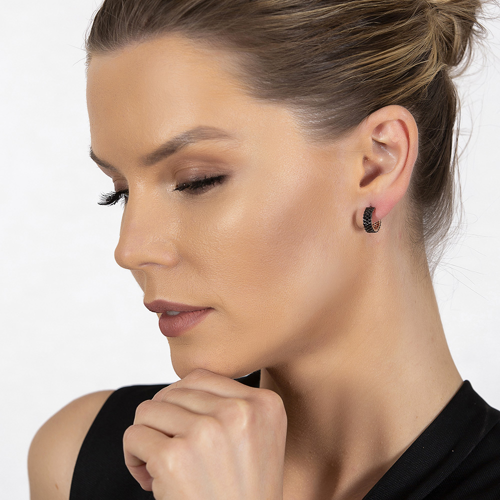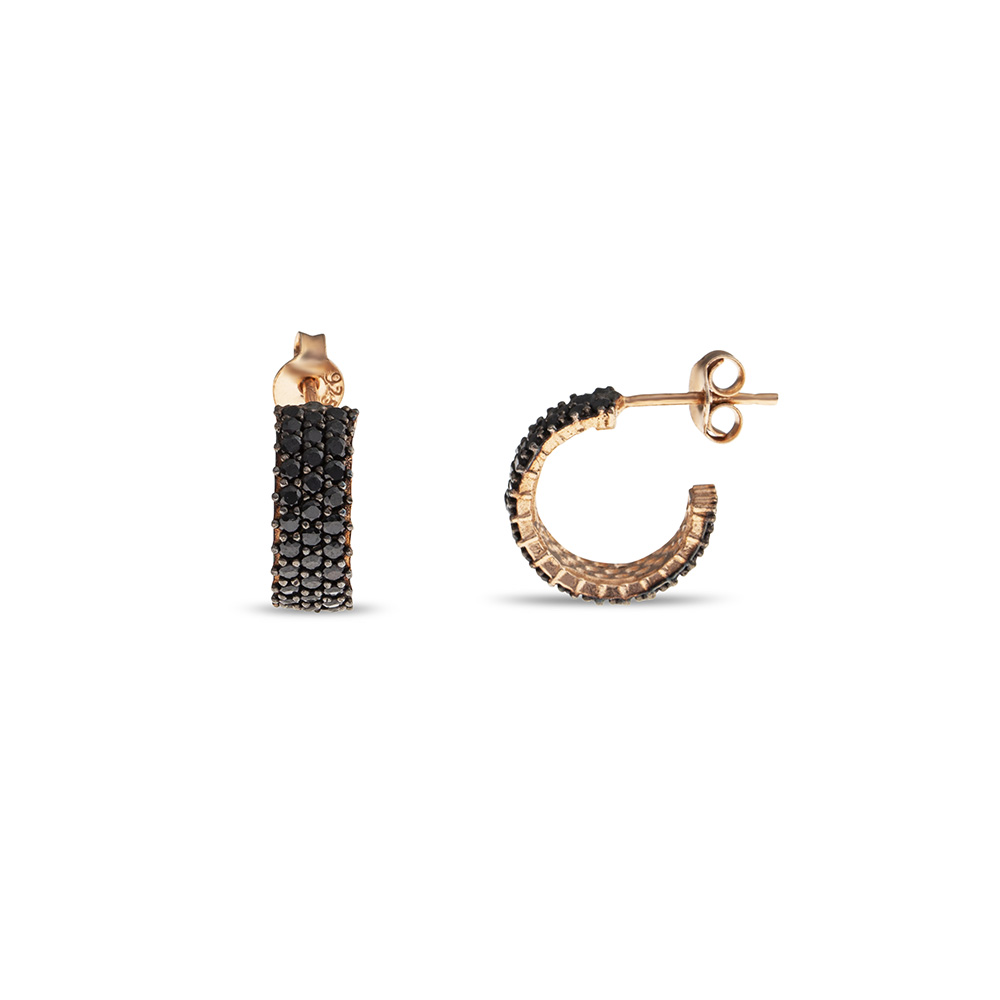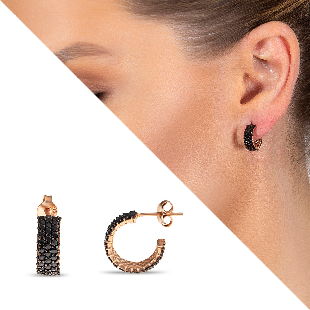 Siyah Zirkon Taşlı Yarım Tur 925 Ayar Gümüş Kadın Küpe