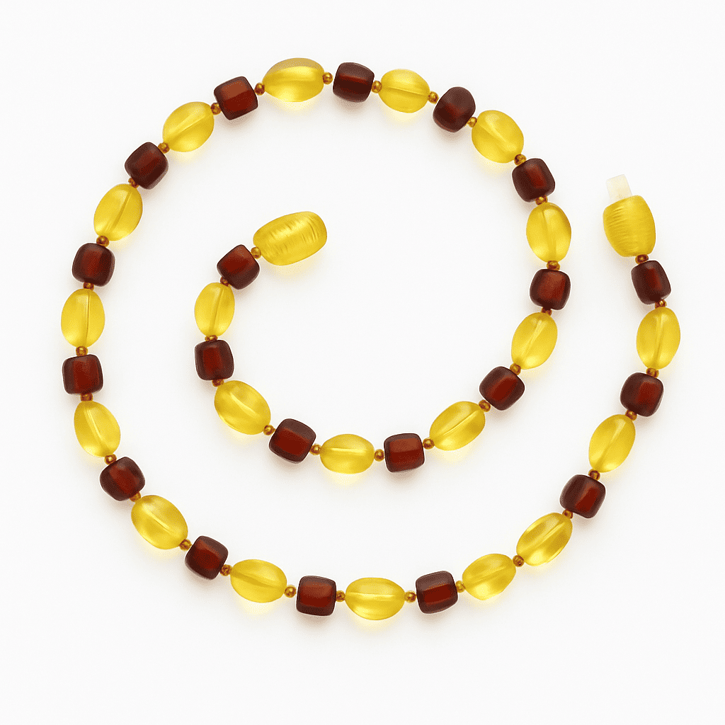 Soft Sarı Koyu Kırmızı Renk Doğal Form Damla Kehribar Taşlı Bebek Diş Kolyesi