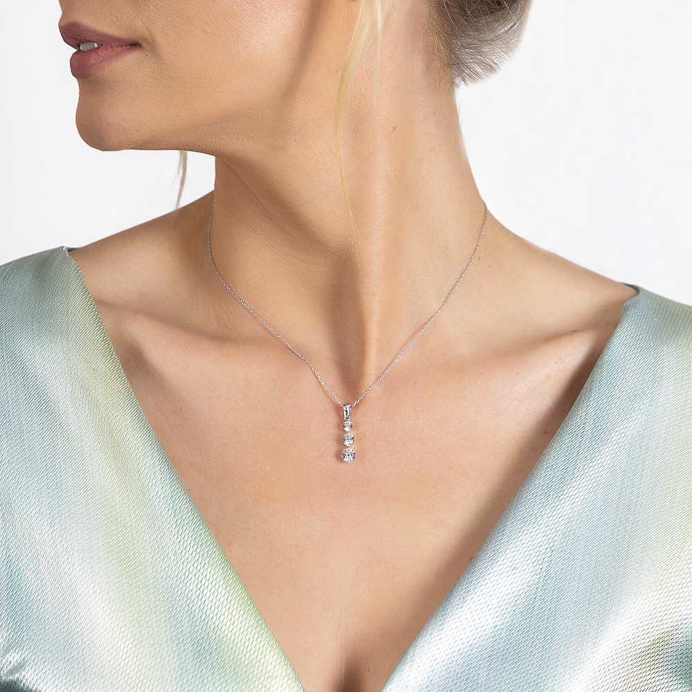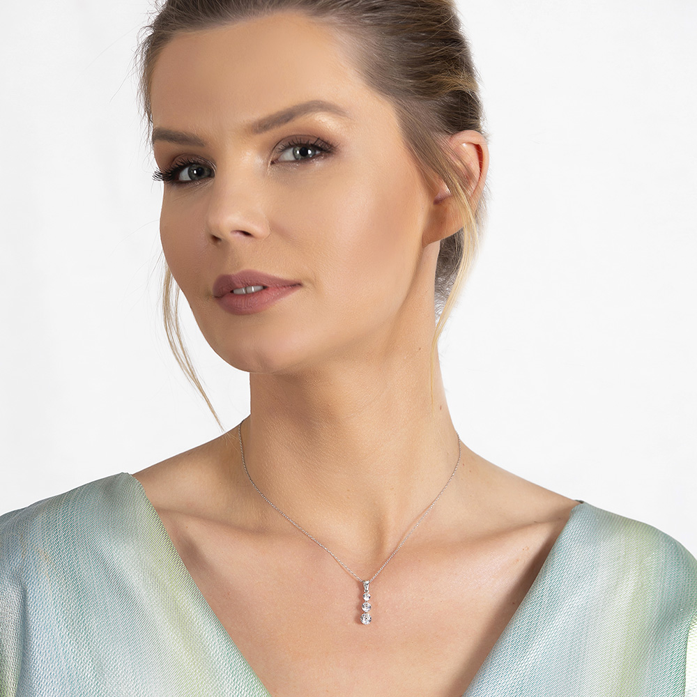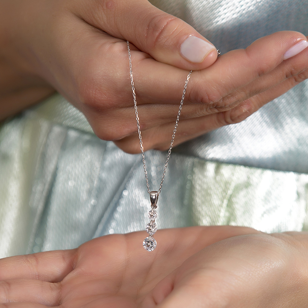 Elmas Görünümlü 3 lü Damla Tasarım 925 Ayar Gümüş Kadın Kolye