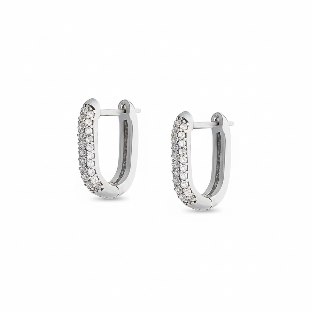 Elmas Görünümlü Mikro Zirkon Taşlı U Tasarım 925 Ayar Kadın Gümüş Küpe