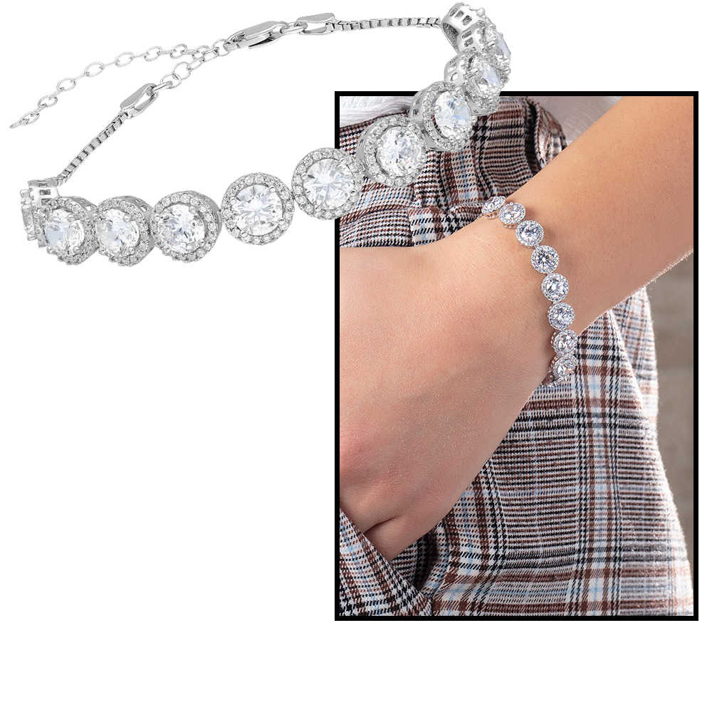 Elmas Görünümlü Büyük Boy 925 Ayar Gümüş Su Yolu Bileklik