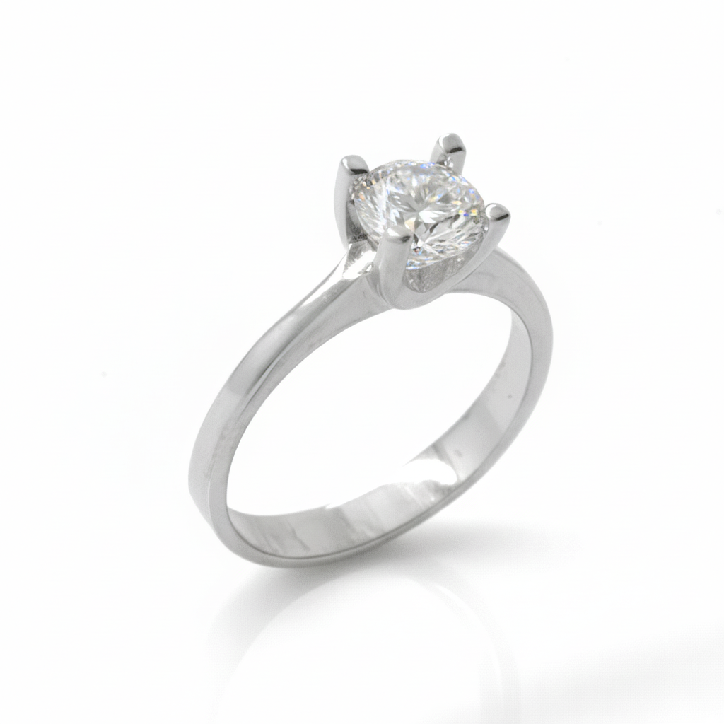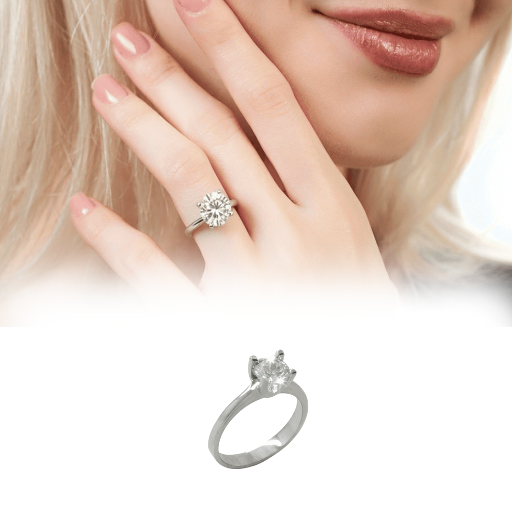 Elmas Görünümlü U Tasarım Gümüş Renk 925 Ayar Gümüş Bayan Tektaş Yüzük