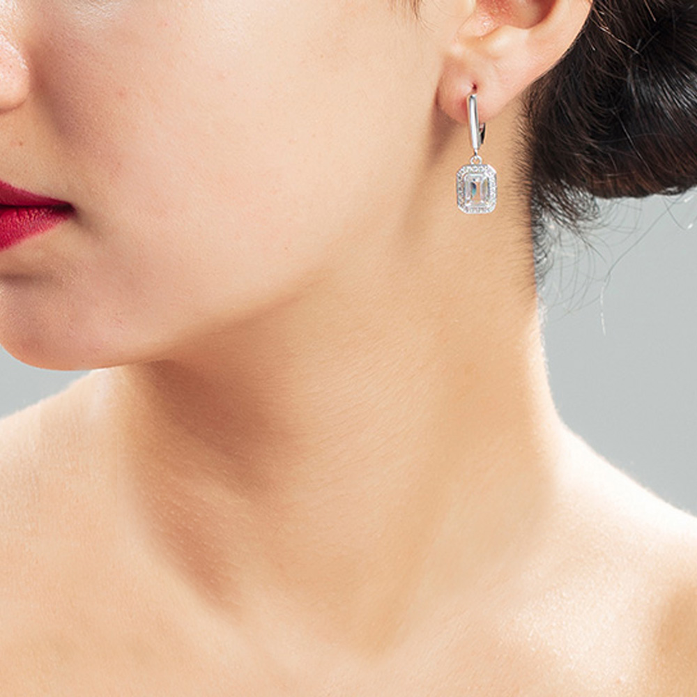 Elmas Görünümlü Zarif Baget Taşlı 925 Ayar Gümüş Kadın Küpe