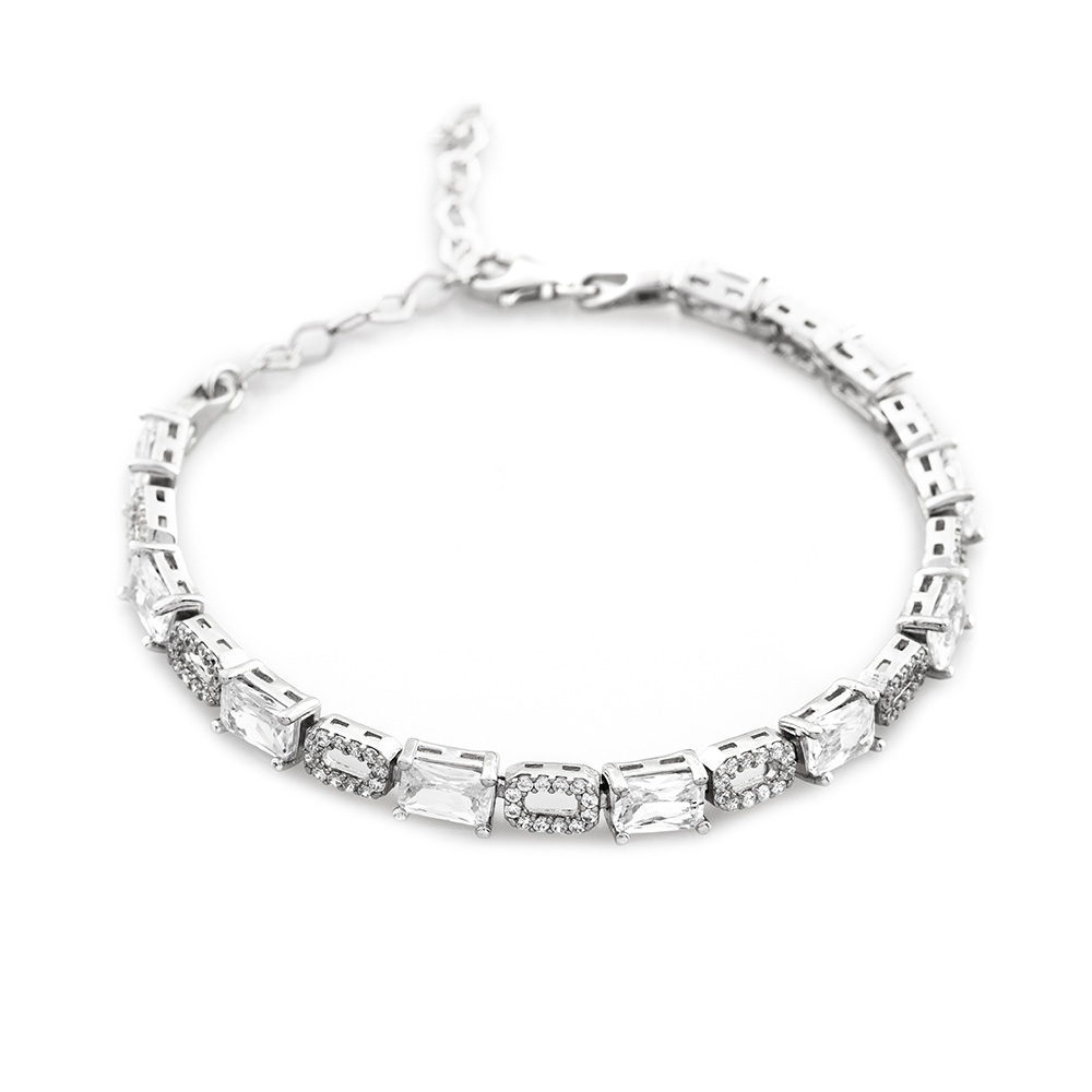 Elmas Görünümlü Zirkon Taşlı Orta Boy 925 Ayar Gümüş Su Yolu Bileklik