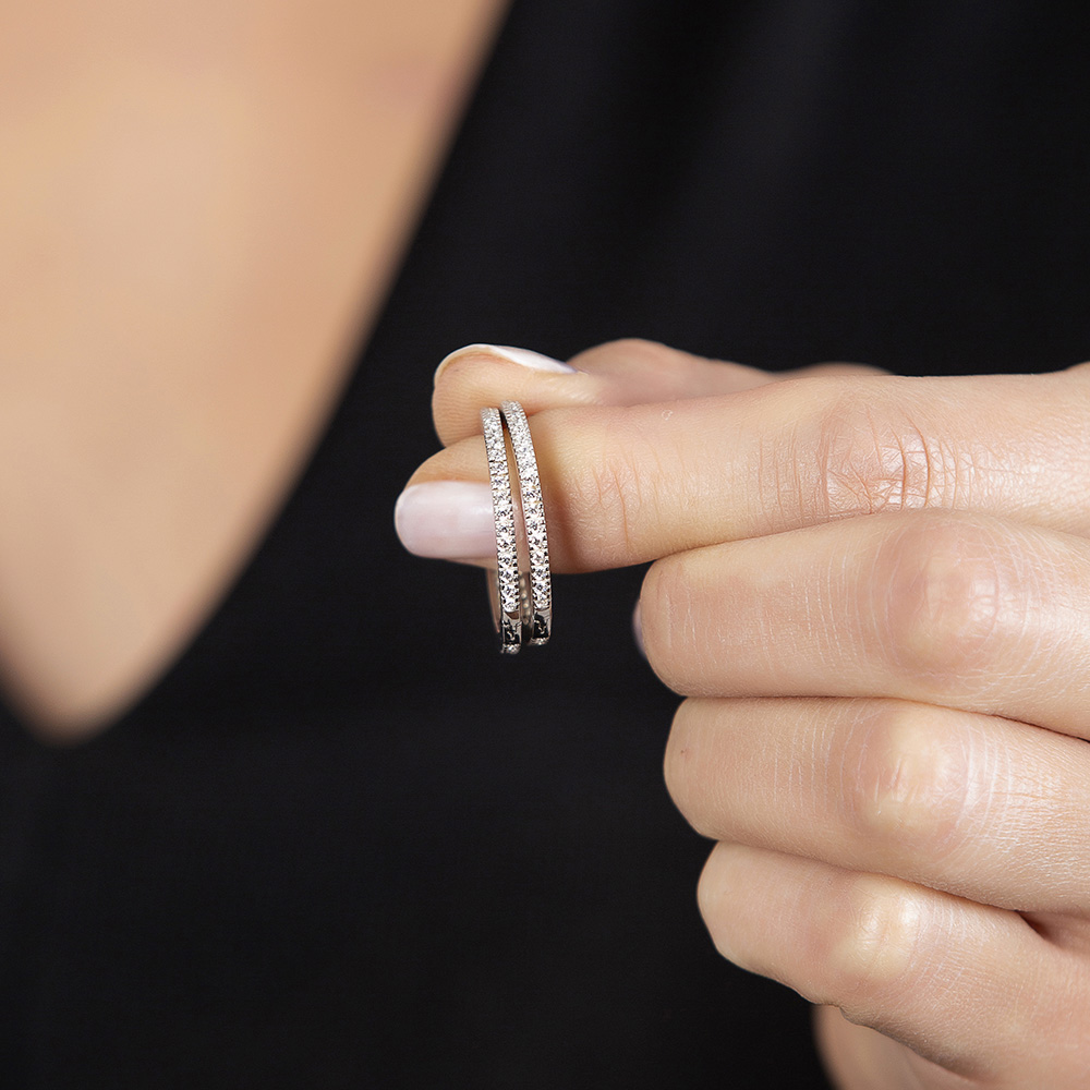Elmas Görünümlü Tek Sıra Zirkon Taşlı Halka Tasarım 925 Ayar Gümüş Küpe