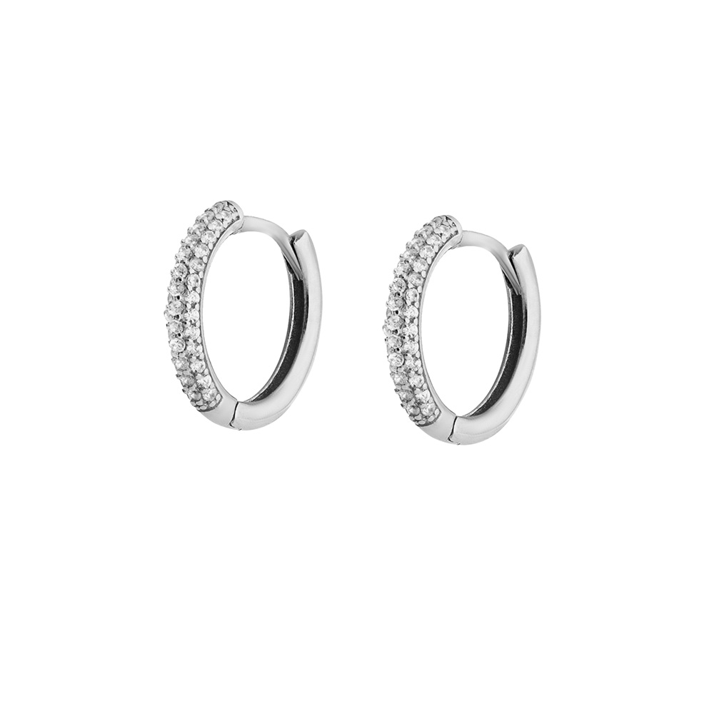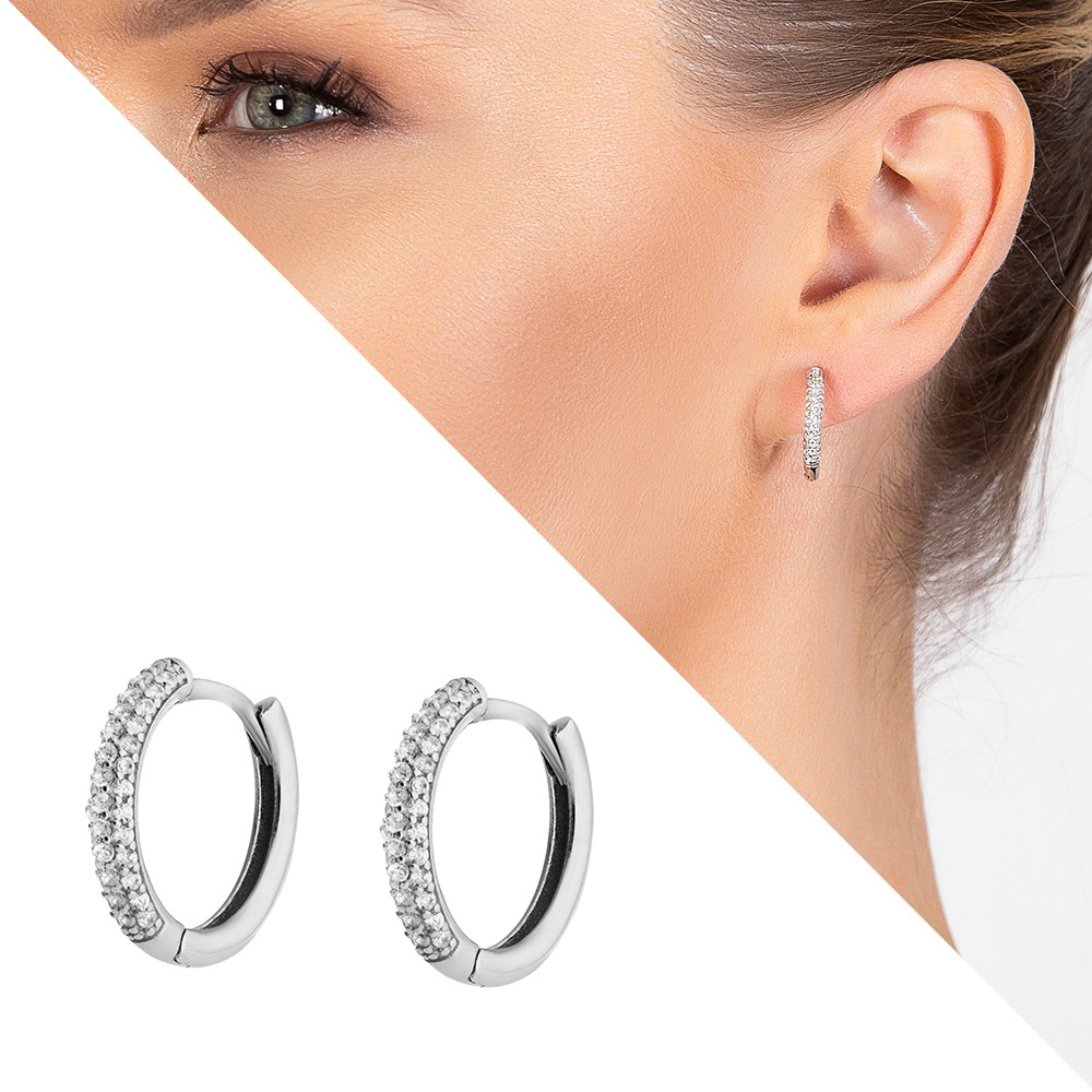 Elmas Görünümlü Üç Sıra Zirkon Taşlı Halka Tasarım 925 Ayar Gümüş Küpe