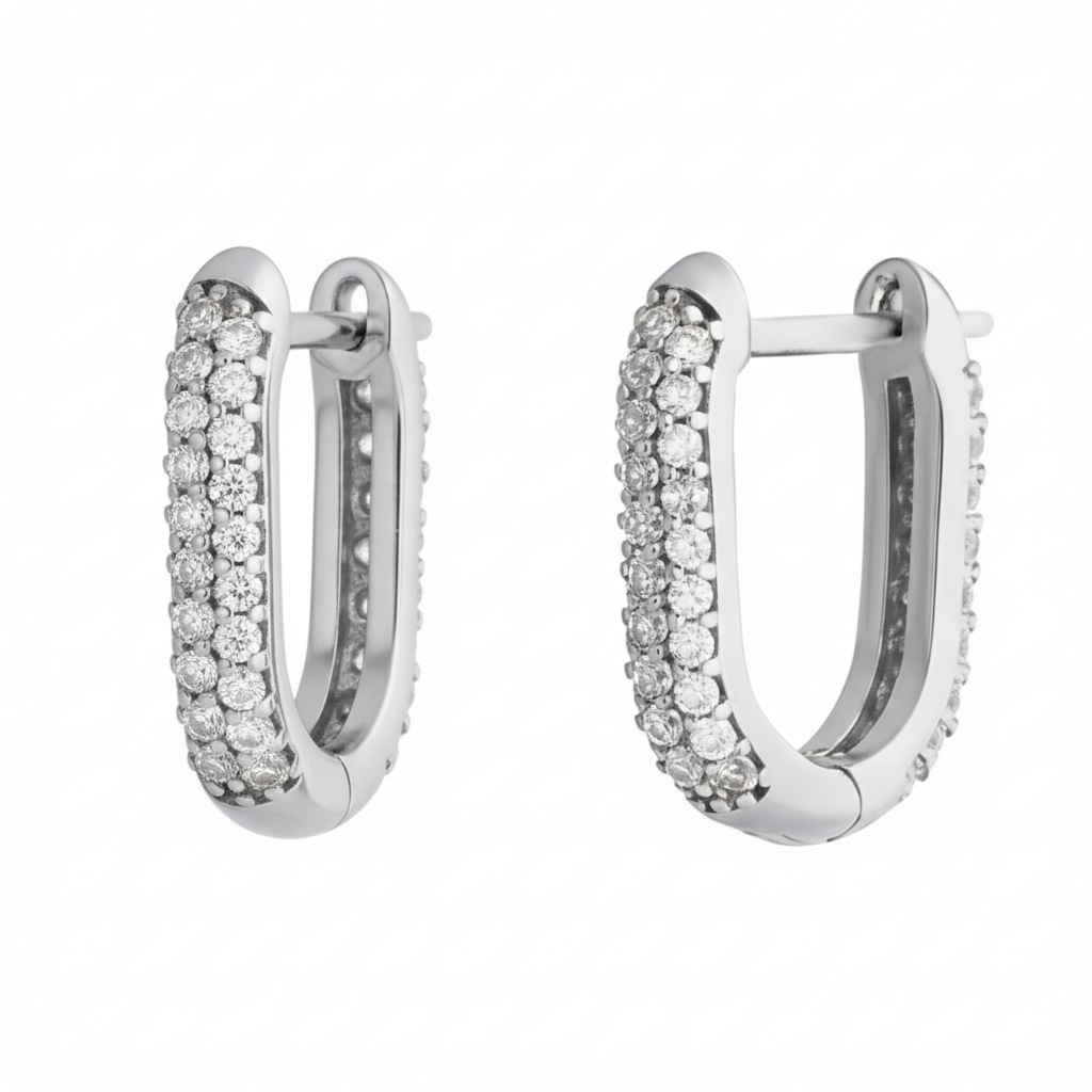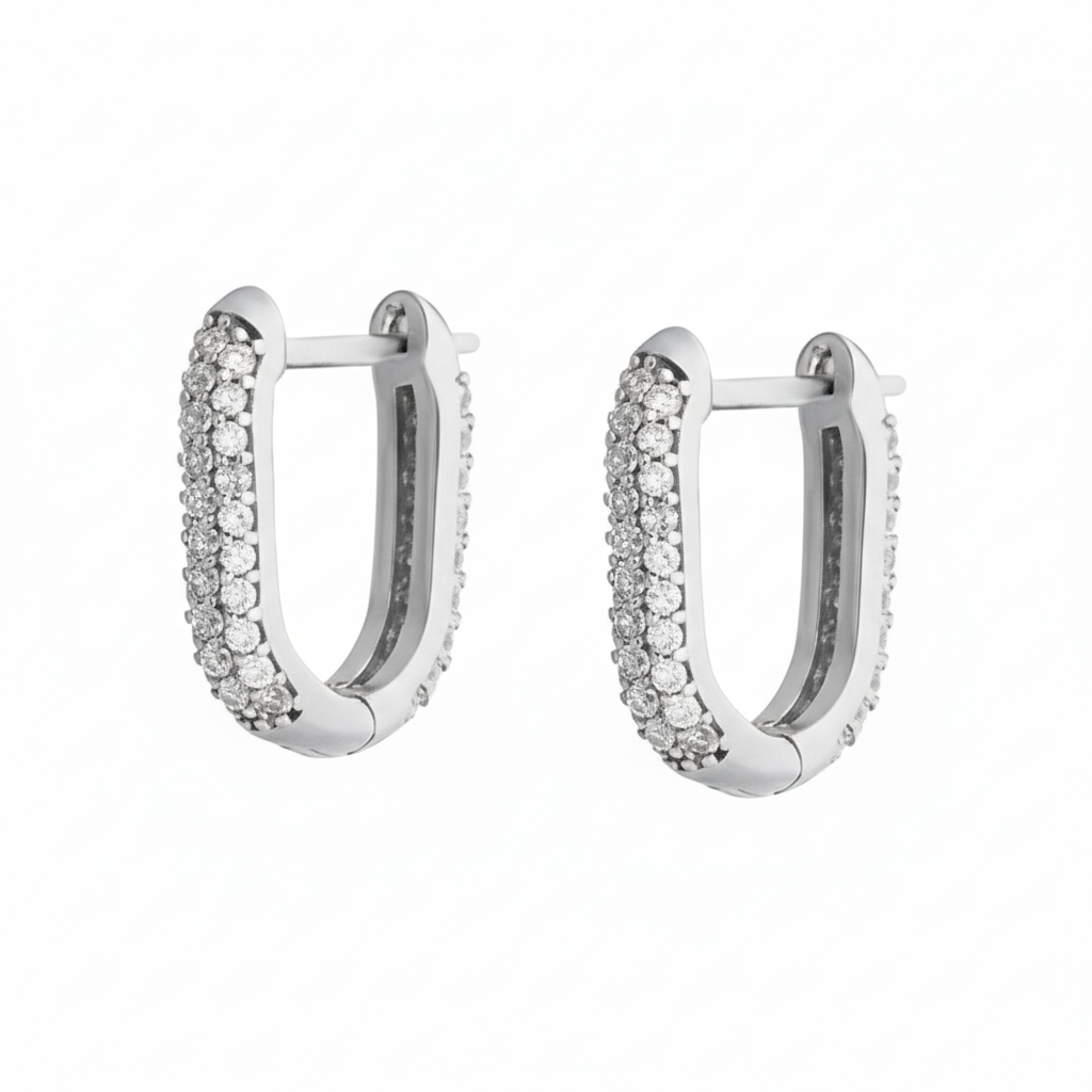 Elmas Görünümlü Zirkon Taşlı U Tasarım 925 Ayar Kadın Gümüş Küpe