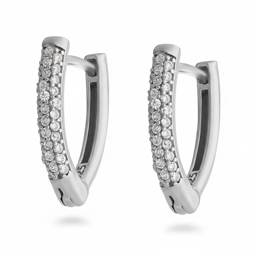 Elmas Görünümlü Zirkon Taşlı V Tasarım 925 Ayar Kadın Gümüş Küpe