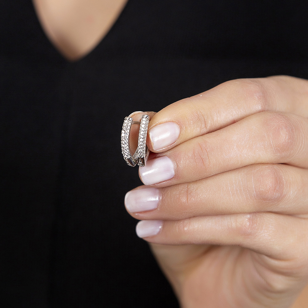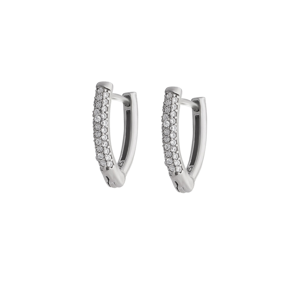 Elmas Görünümlü Zirkon Taşlı V Tasarım 925 Ayar Gümüş Küpe