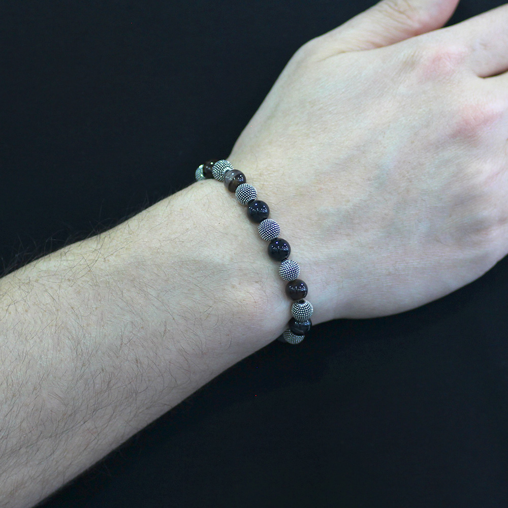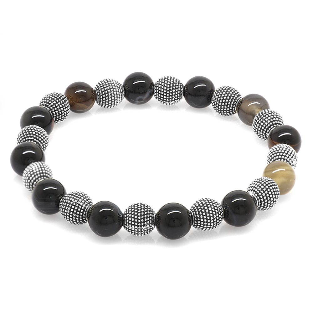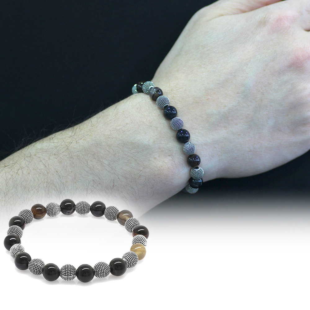 Süleyman Akik Doğaltaş Bileklik - Metal Kombinli - Küre Kesim