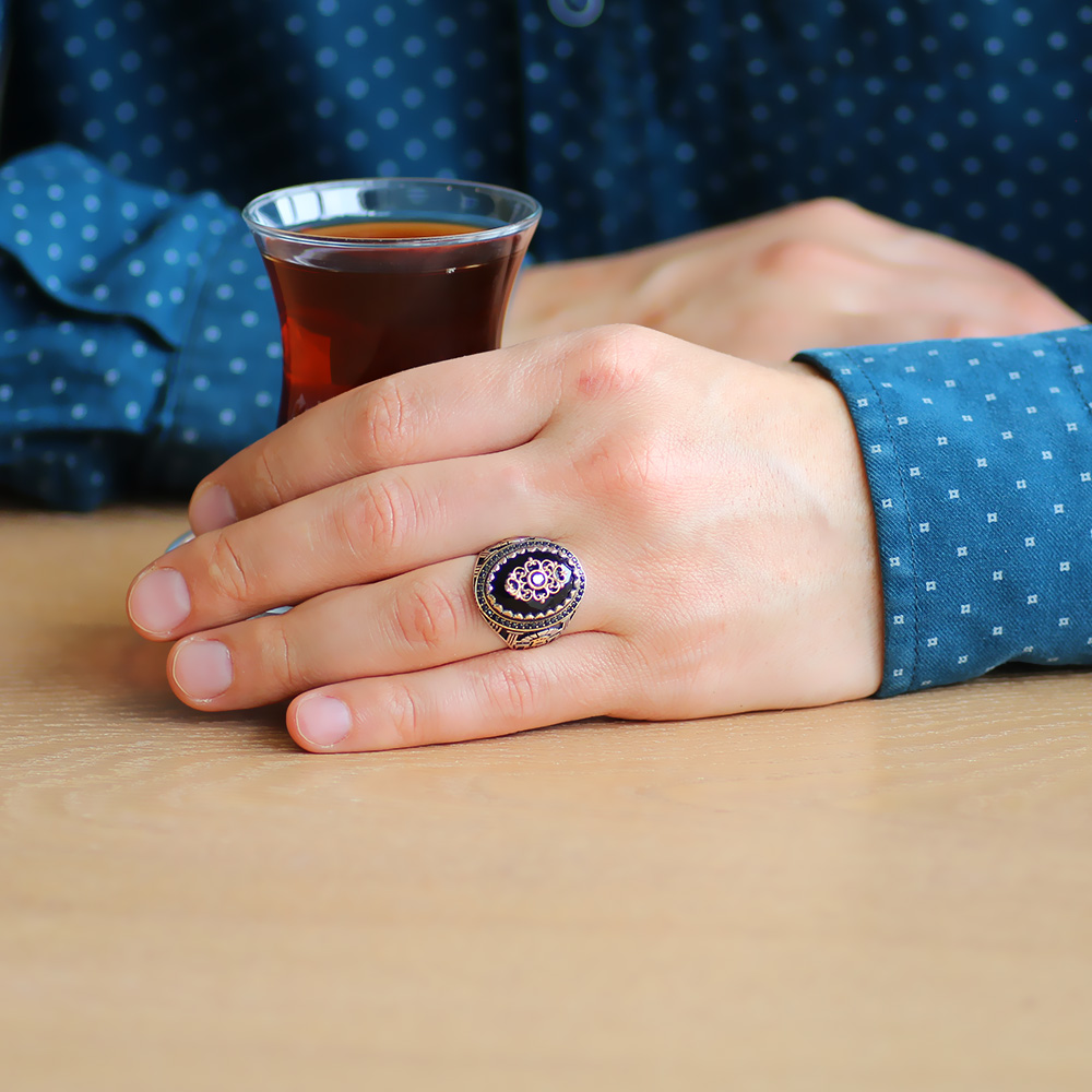 Sur Kapısı Temalı Faset Kesim Siyah Zirkon Taşlı 925 Ayar Gümüş Erkek Yüzük - 5