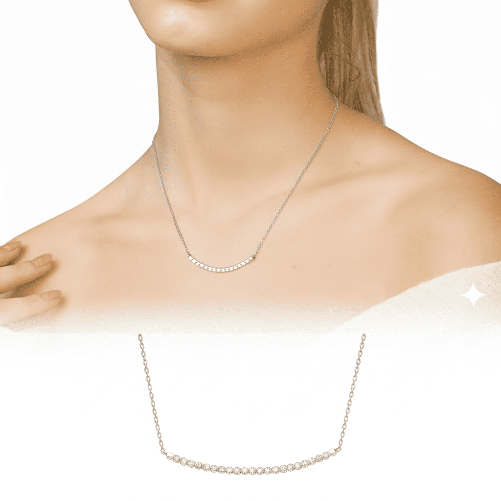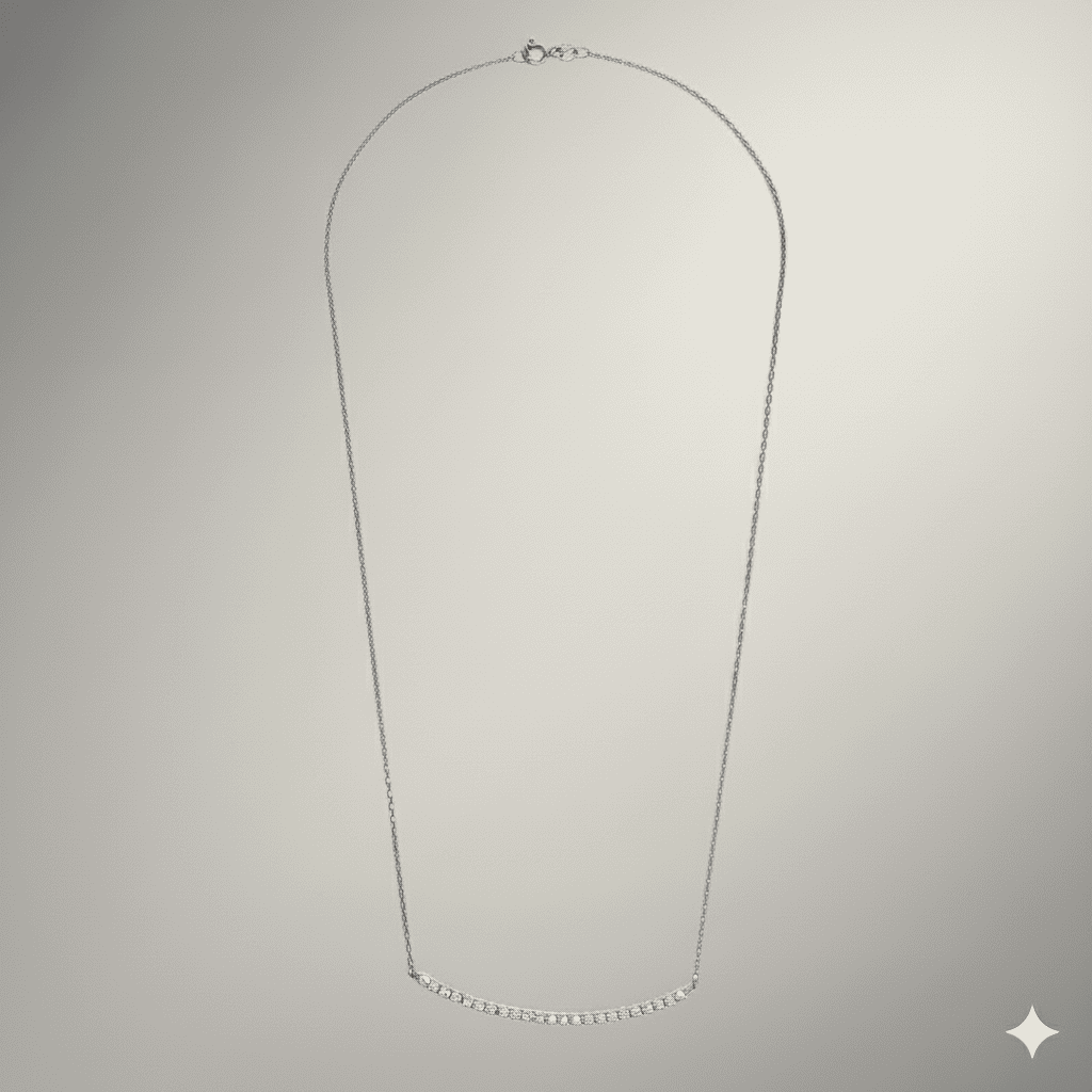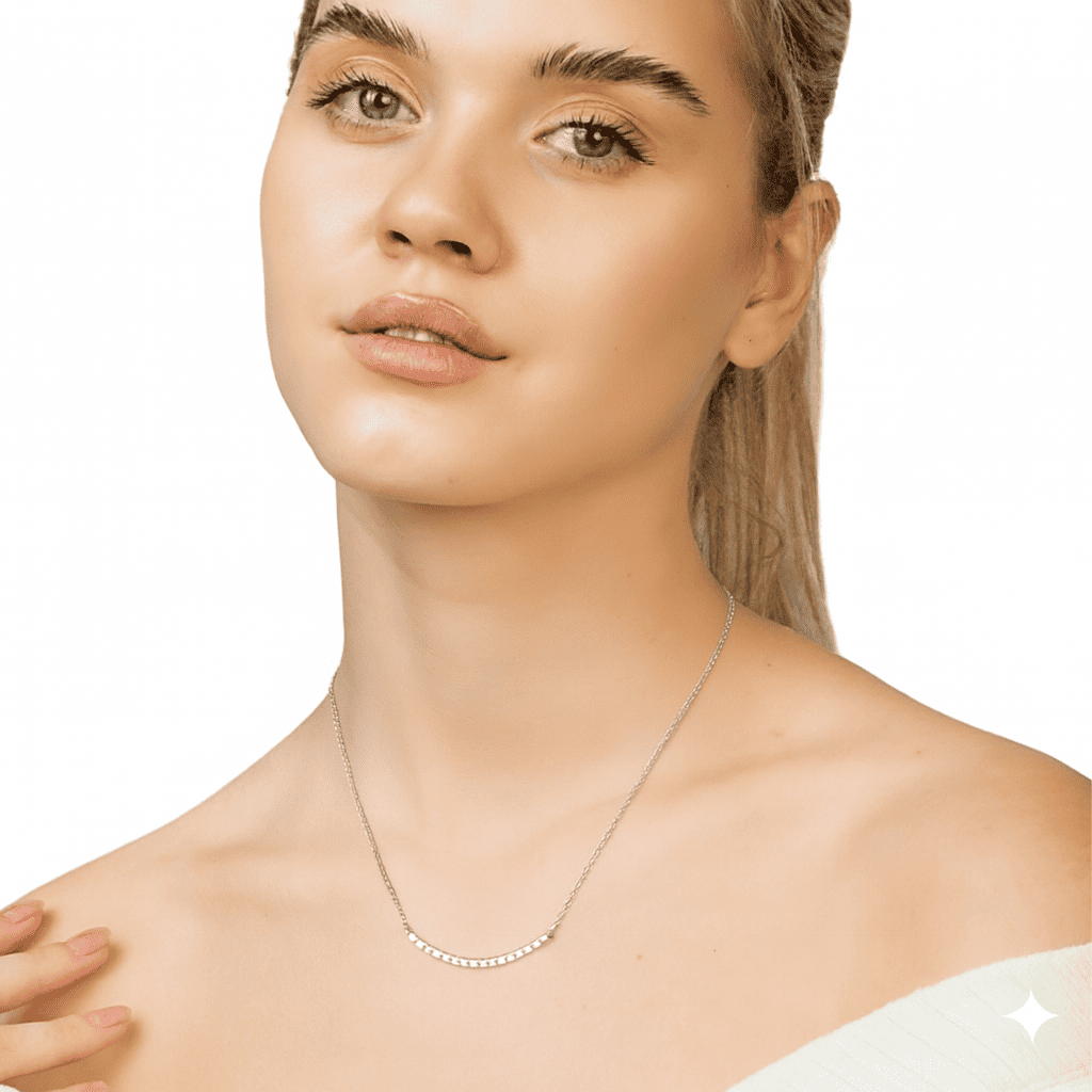Suyolu Tasarım Sıralı Zirkon Taş Süslemeli Gümüş Renk 925 Ayar Gümüş Bayan Kolye