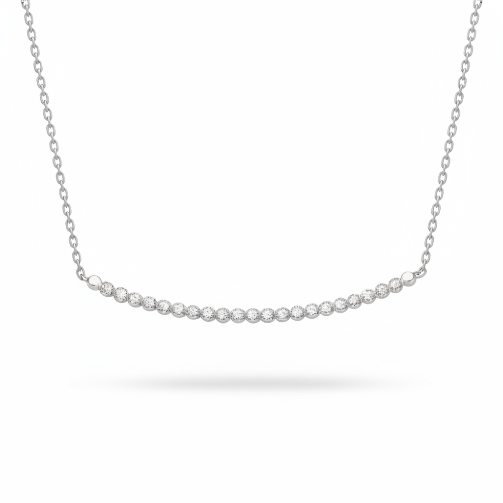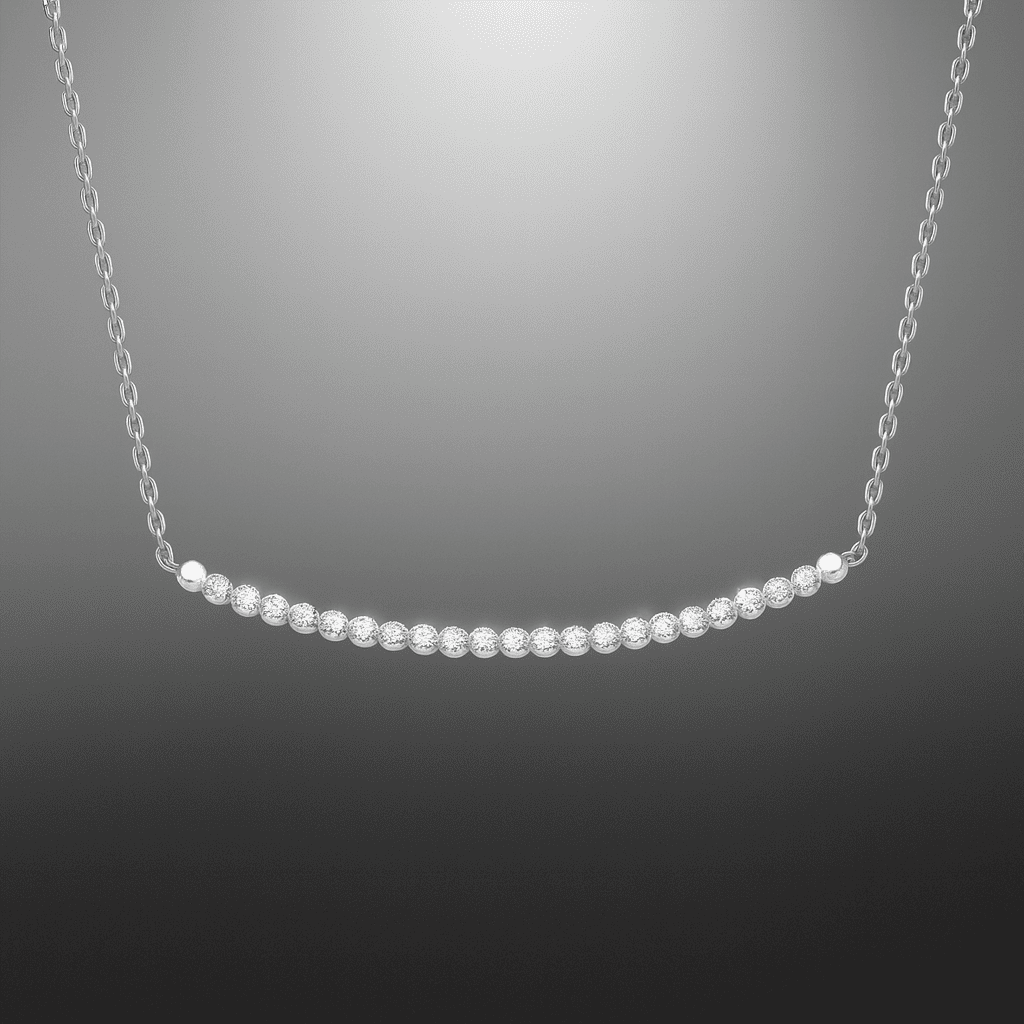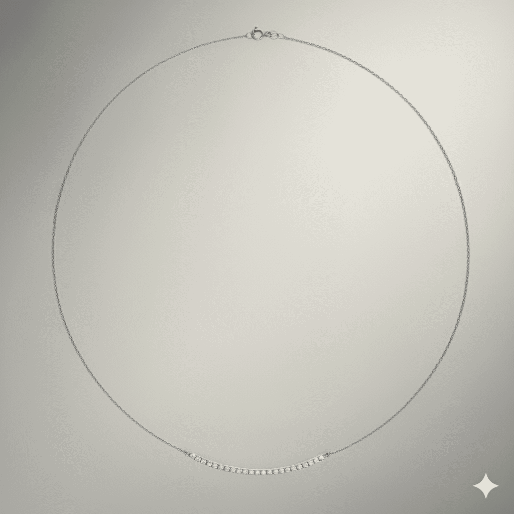 Suyolu Tasarım Sıralı Zirkon Taş Süslemeli Gümüş Renk 925 Ayar Gümüş Bayan Kolye