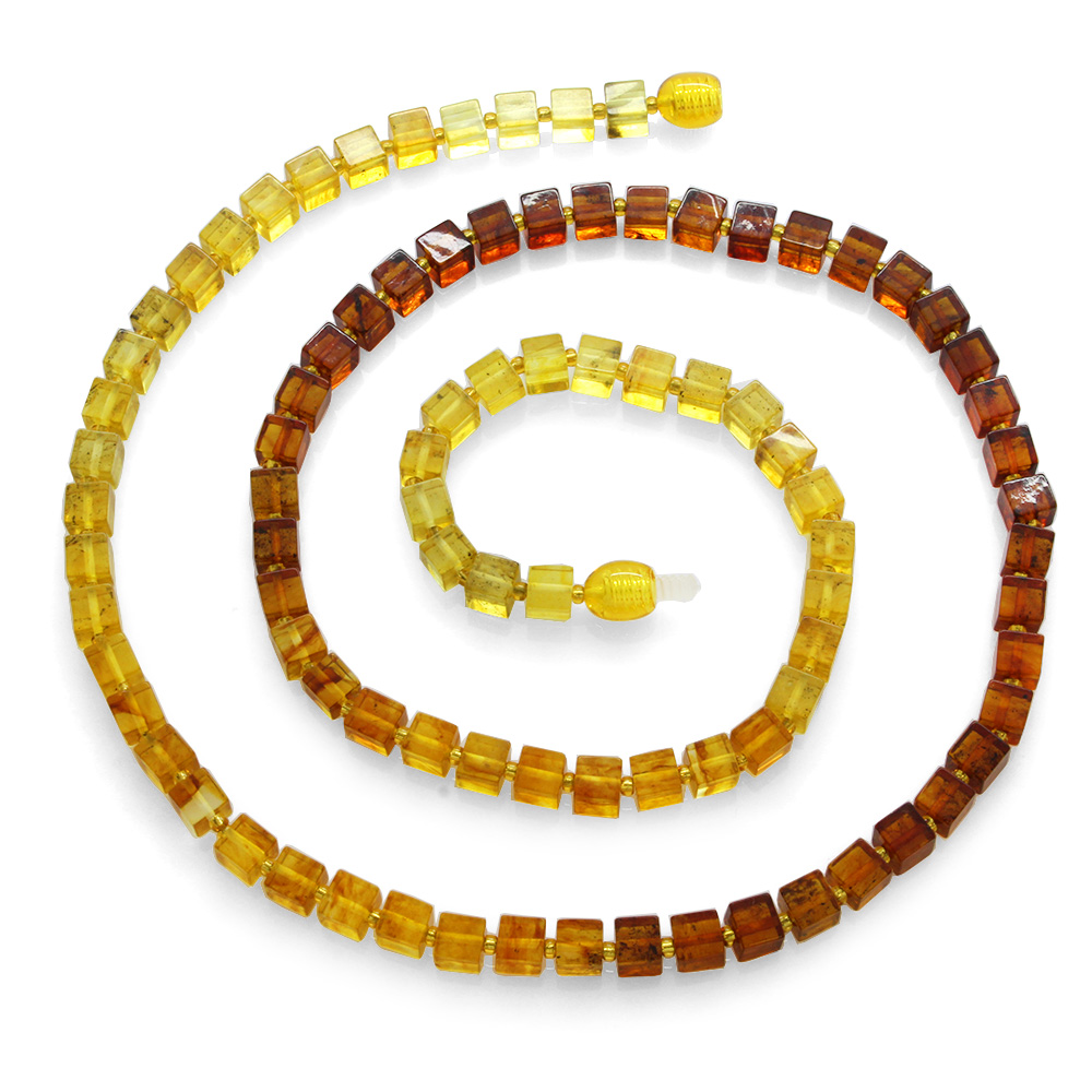 Süzme Bal Rengi Küp Kesim Doğal Damla Kehribar Kadın Kolye - 1