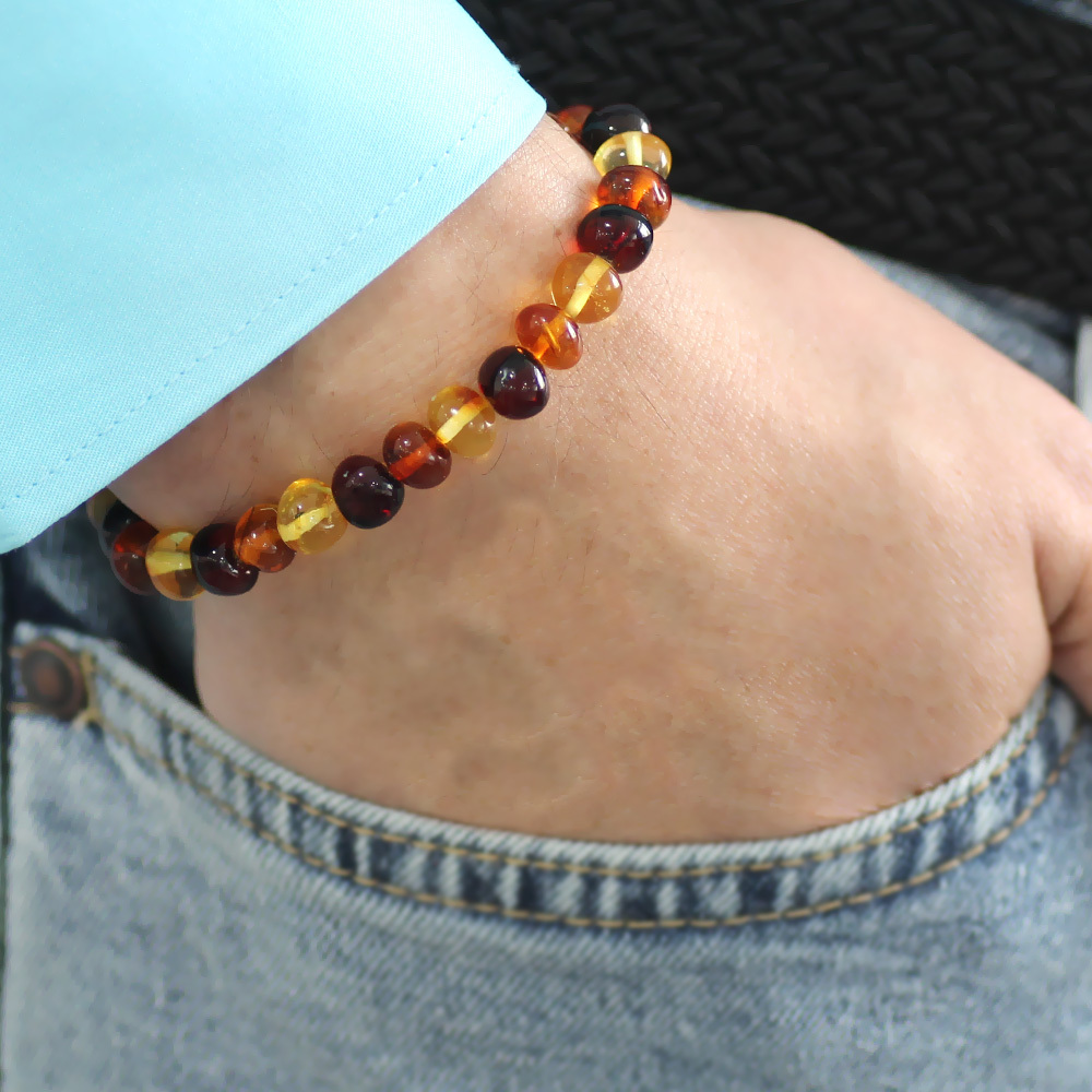 Süzme Multicolor Renk Natural Form Doğal Damla Kehribar Erkek Bileklik