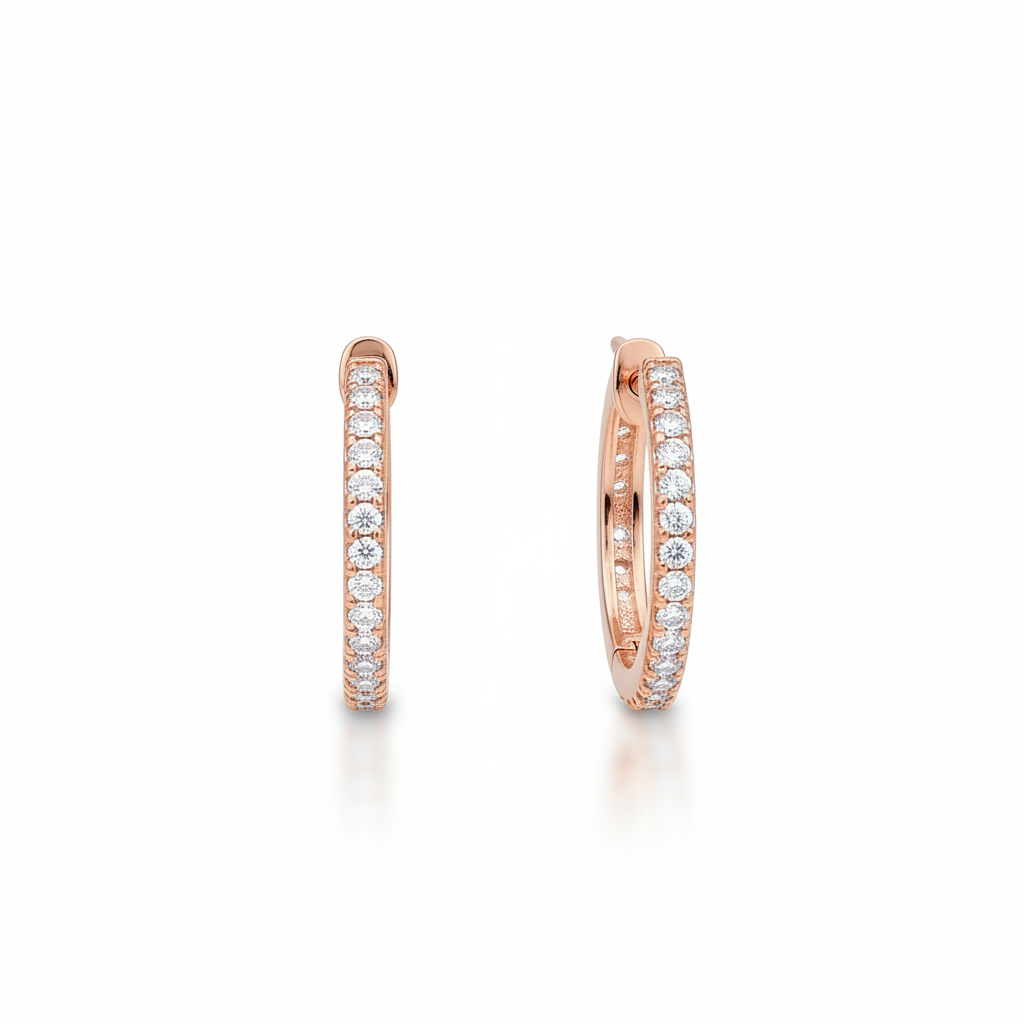 Tek Sıra Mikro Beyaz Zirkon Taşlı Rose Renk Yarım Tur 925 Ayar Gümüş Kadın Küpe