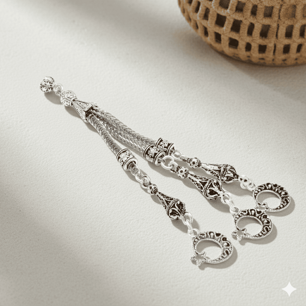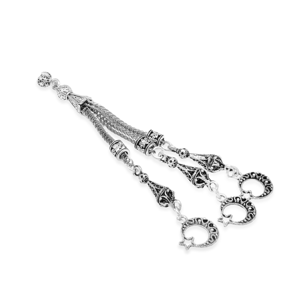 Telkari Ayyıldız Zafer Temalı Foxtail Zincirli Üç Kamçılı Kararmaz Metal Püskül