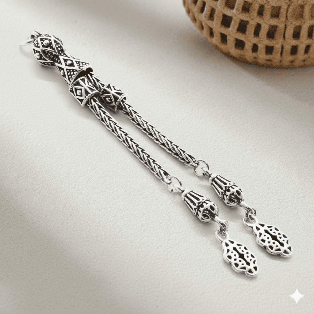 Telkari Model Özel Tasarım 2'li Kamçı 925 Ayar Gümüş Püskül