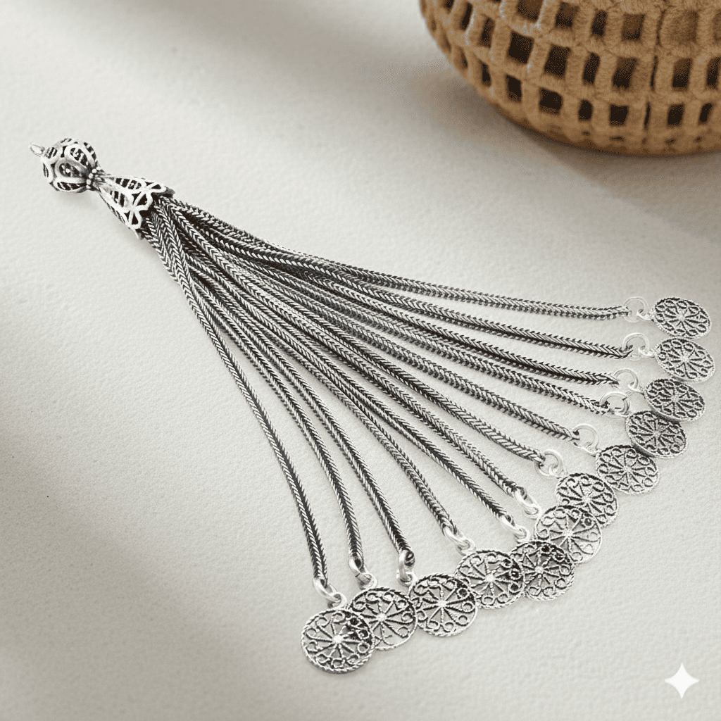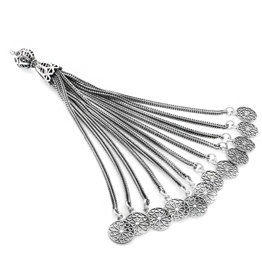 Telkari Selçuklu Motif Tasarım 12 Kamçılı 925 Ayar Gümüş Püskül