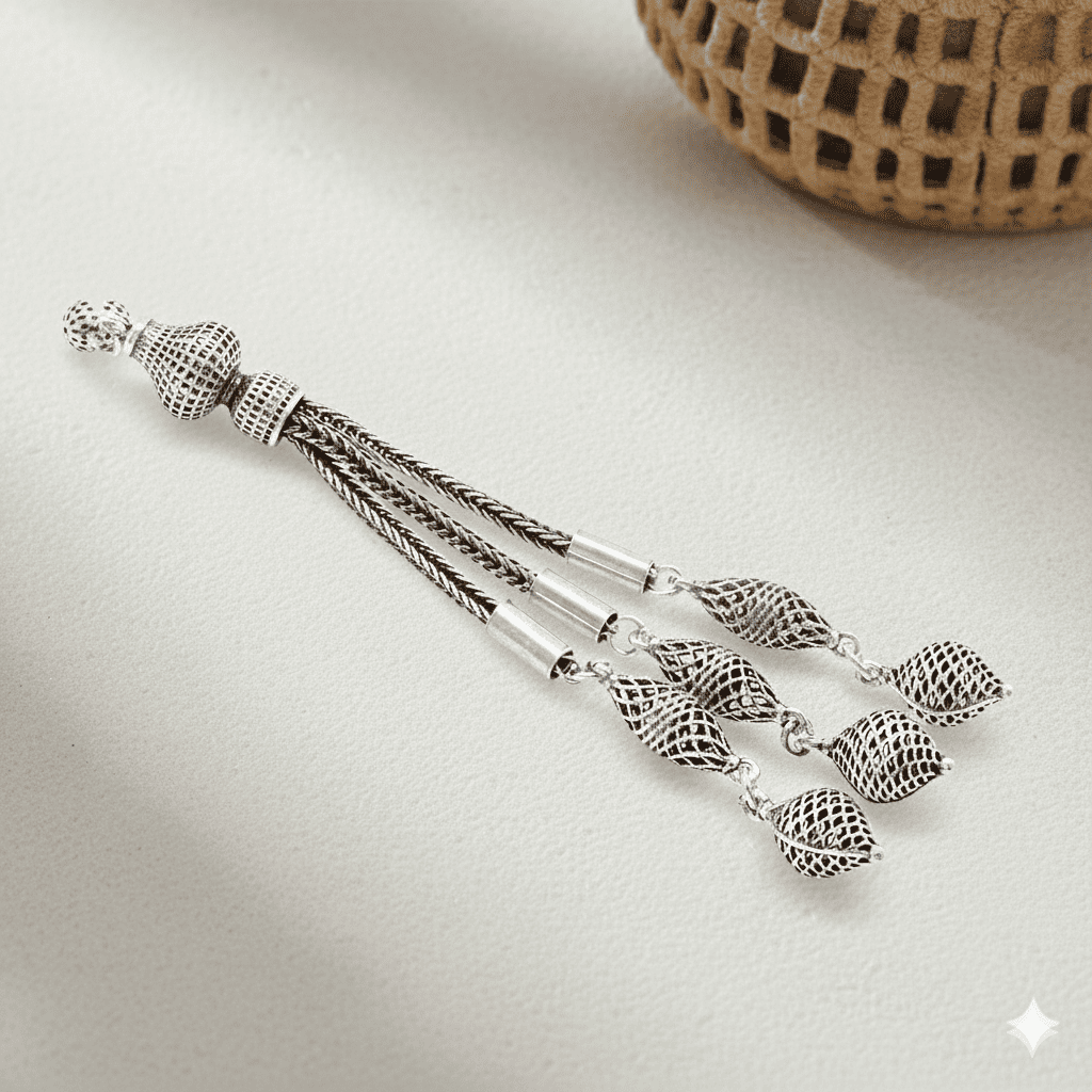 Telkari Tasarım 3 lü Kamçı 925 Ayar Gümüş Püskül