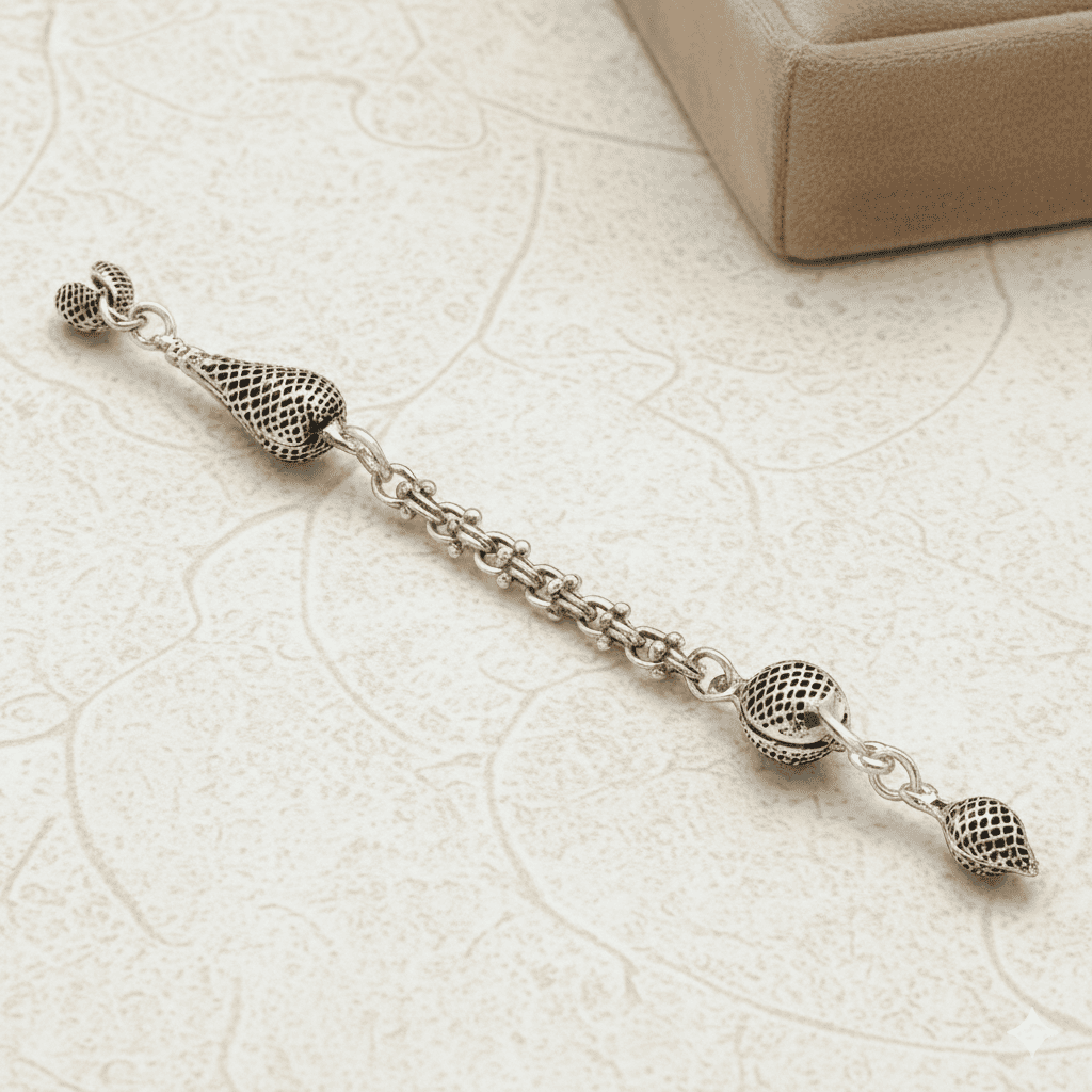 Telkari Tasarım Gümüş Renk Arnavut Zincirli Tek Kamçılı Kararmaz Metal Püskül