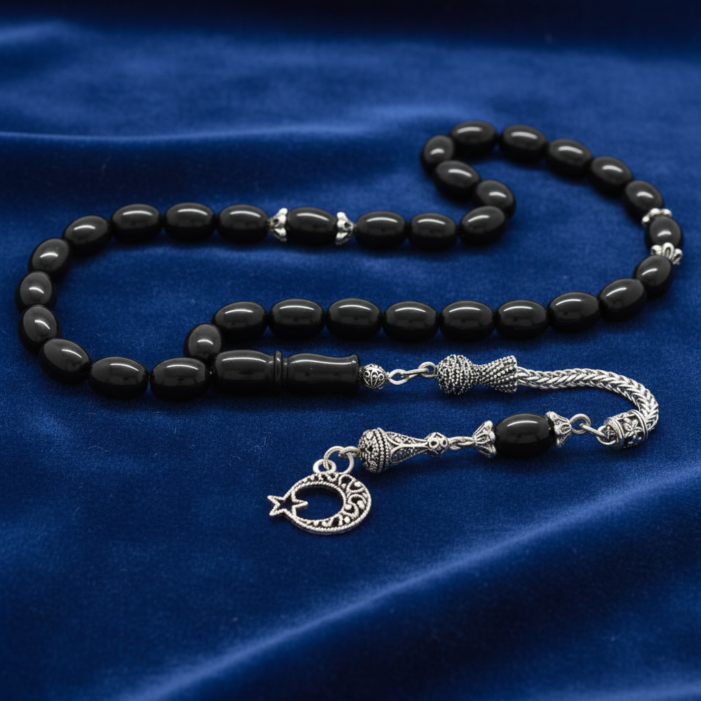 Kararmaz Metal Ayyıldız Püsküllü Arpa Kesim Rus Oltu Tesbih