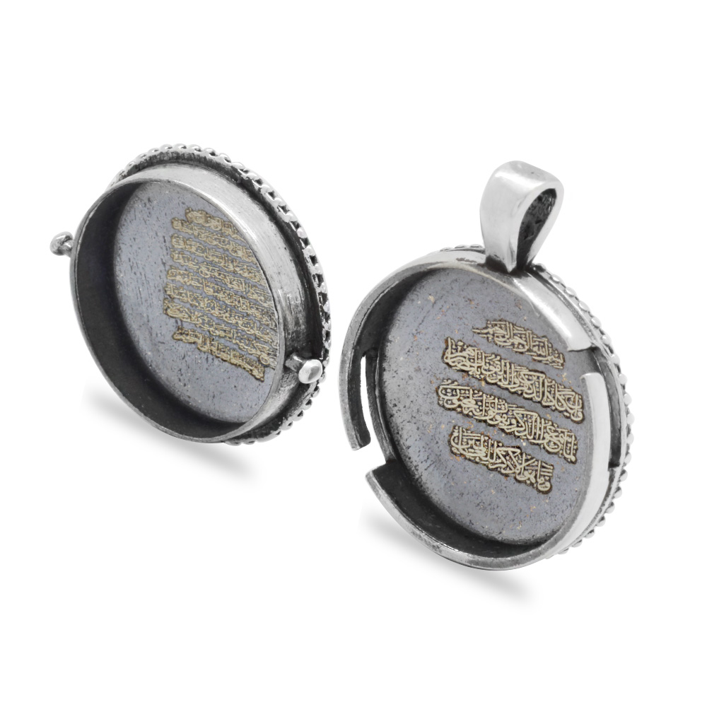 Tuğra Temalı Açılır Kapaklı İçinde Ayetel Kürsi Yazılı 925 Ayar Gümüş Dua Kolye