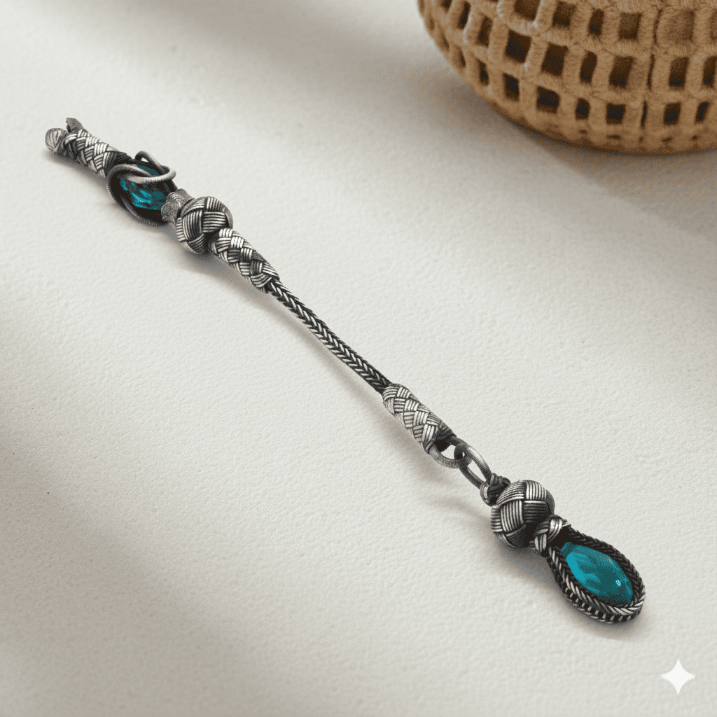 Turkuaz Zirkon Taşlı 1000 Ayar Gümüş Kazaz Püskül