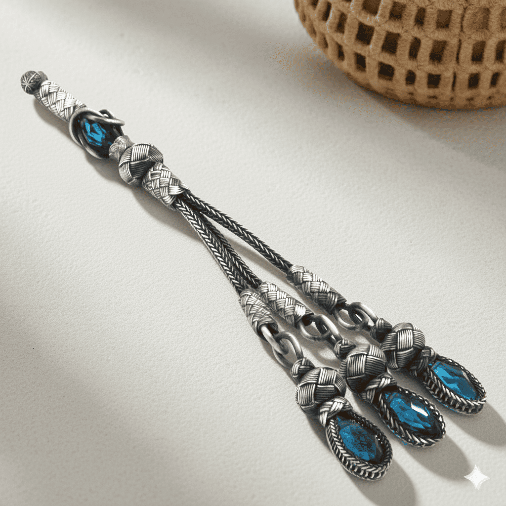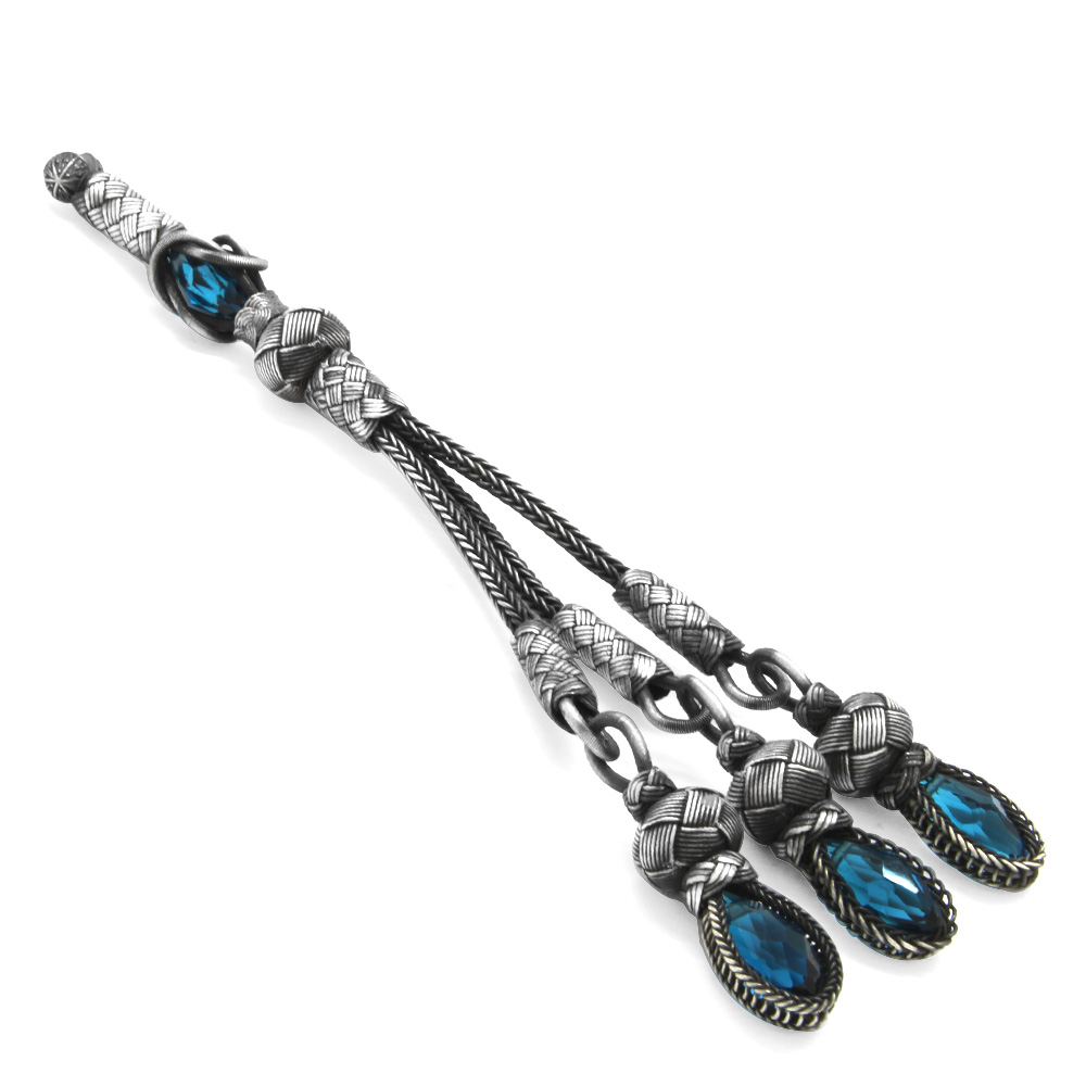 Turkuaz Zirkon Taşlı 3 lü 1000 Ayar Gümüş Kazaz Püskül