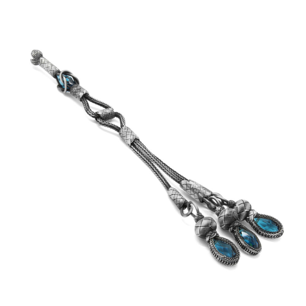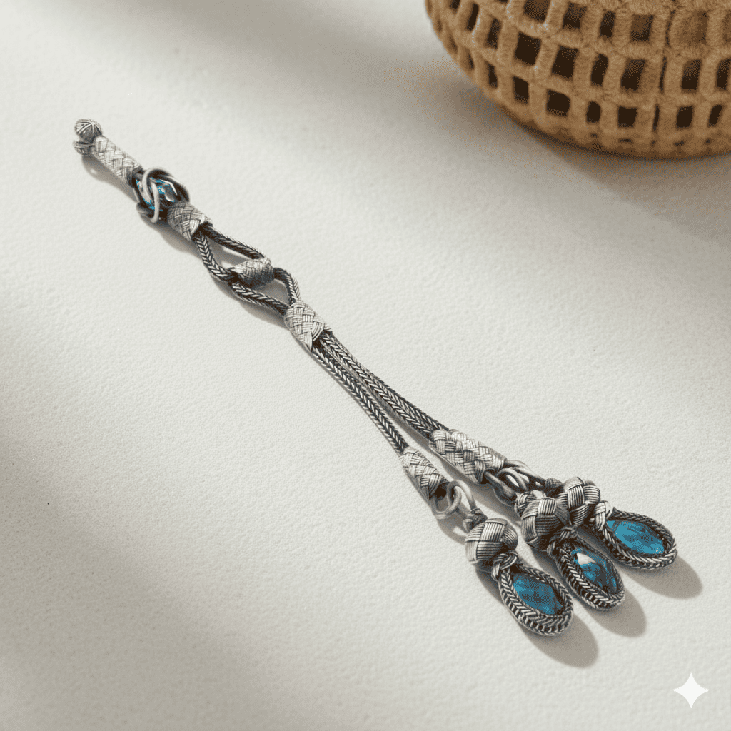 Turkuaz Zirkon Taşlı 3 lü Uzun Model 1000 Ayar Gümüş Kazaz Püskül