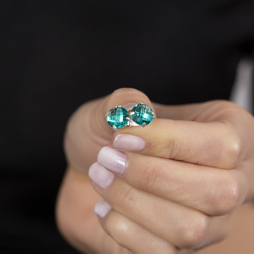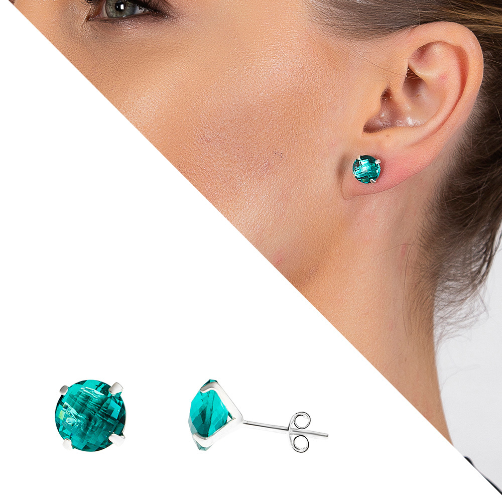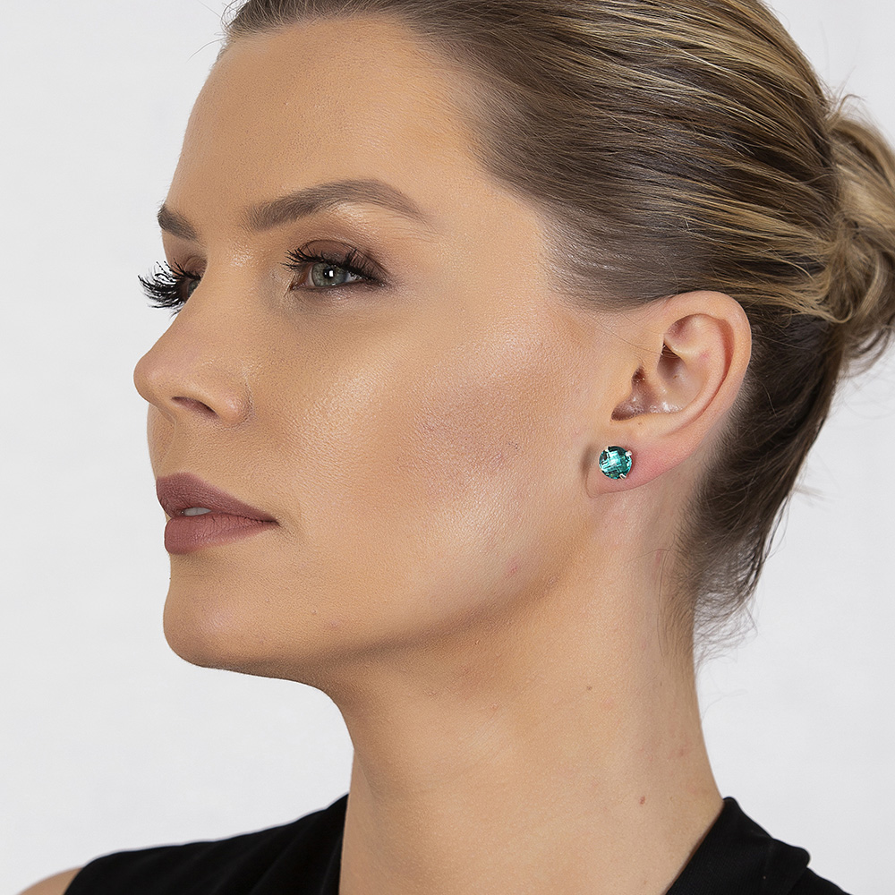 Turkuaz Zirkon Taşlı Oval Tasarım 925 Ayar Gümüş Kadın Küpe