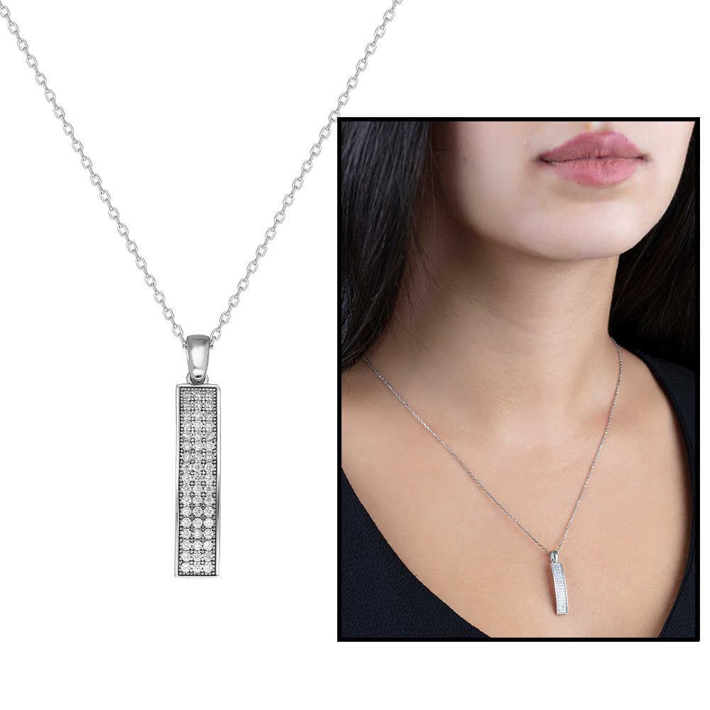 Üç Sıra Zirkon Taşlı 925 Ayar Gümüş Kolye