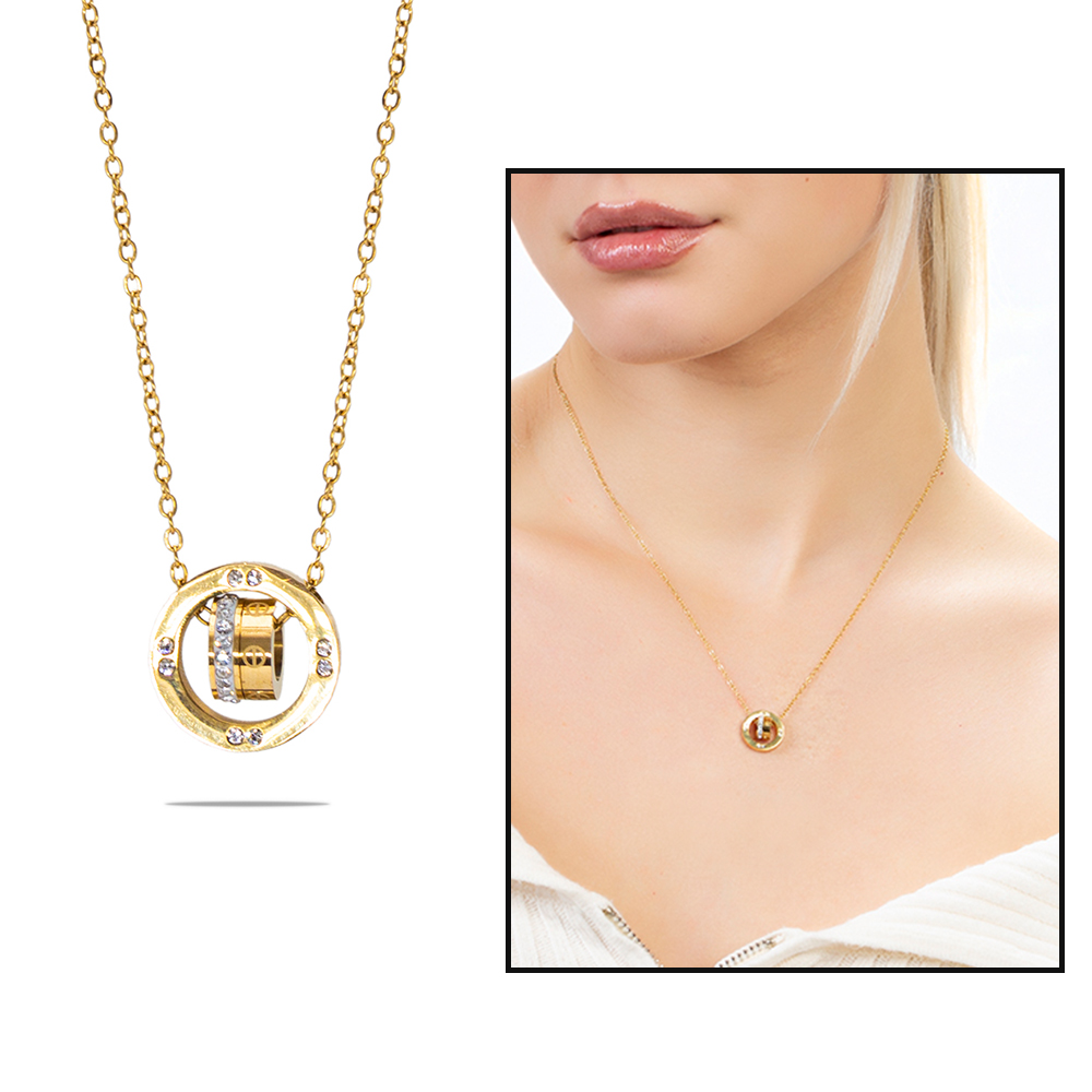 3 lü Halka Tasarım Altın Renk Çelik Kadın Kolye