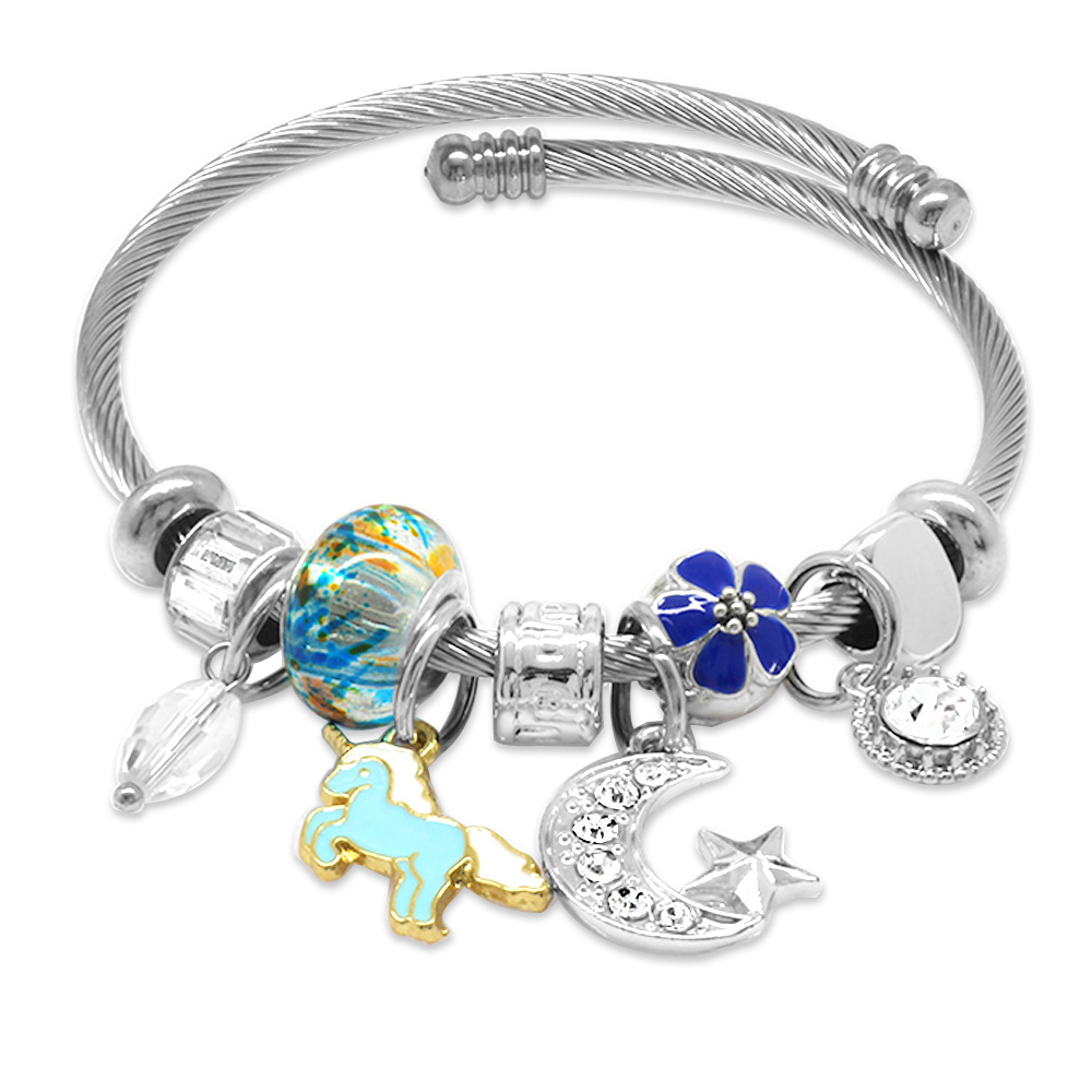 Unicorn Detaylı Pandora Tasarım Gümüş Renk Çelik Kadın Sallantılı Bileklik
