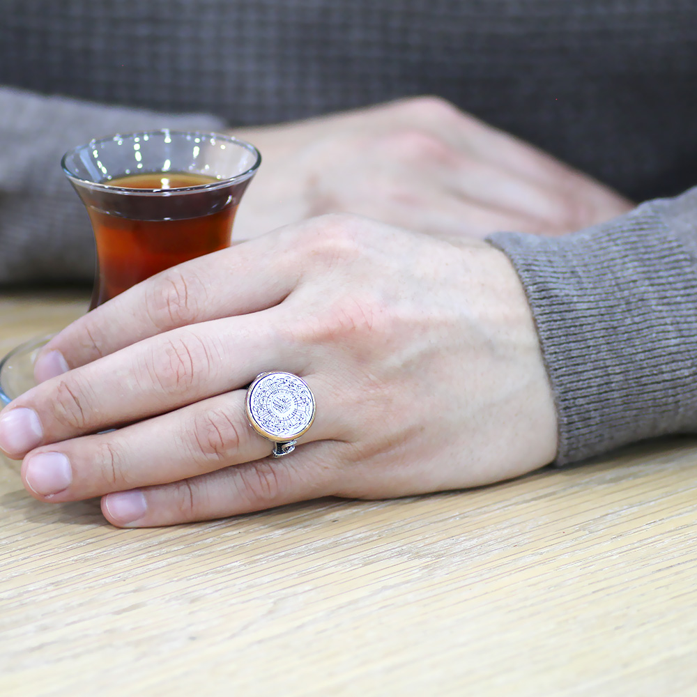 Üzerine Hüsnü Hat İnşirah Suresi Yazılı Minimal Tasarım 925 Ayar Gümüş Erkek Yüzük