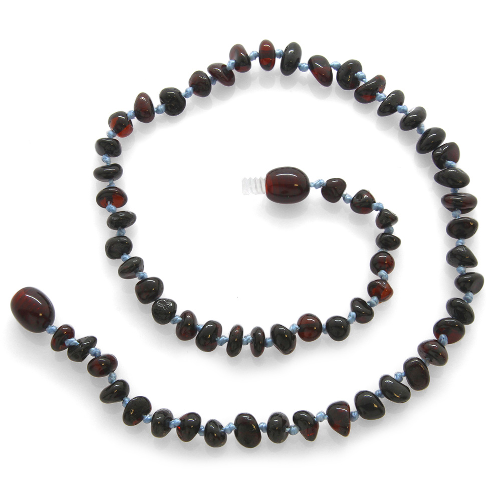 Koyu Kırmızı Doğal Damla Kehribar Taşlı Bebek Diş Kolyesi