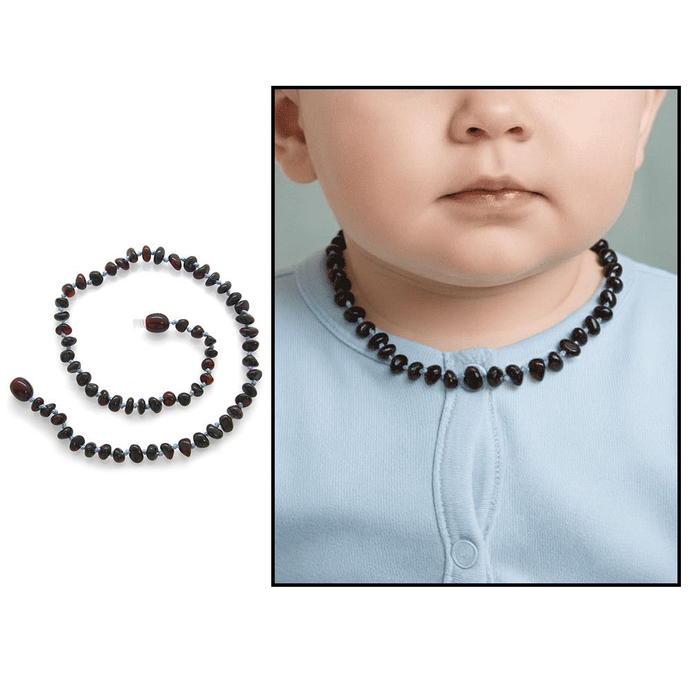 Koyu Kırmızı Doğal Damla Kehribar Taşlı Bebek Diş Kolyesi - 1