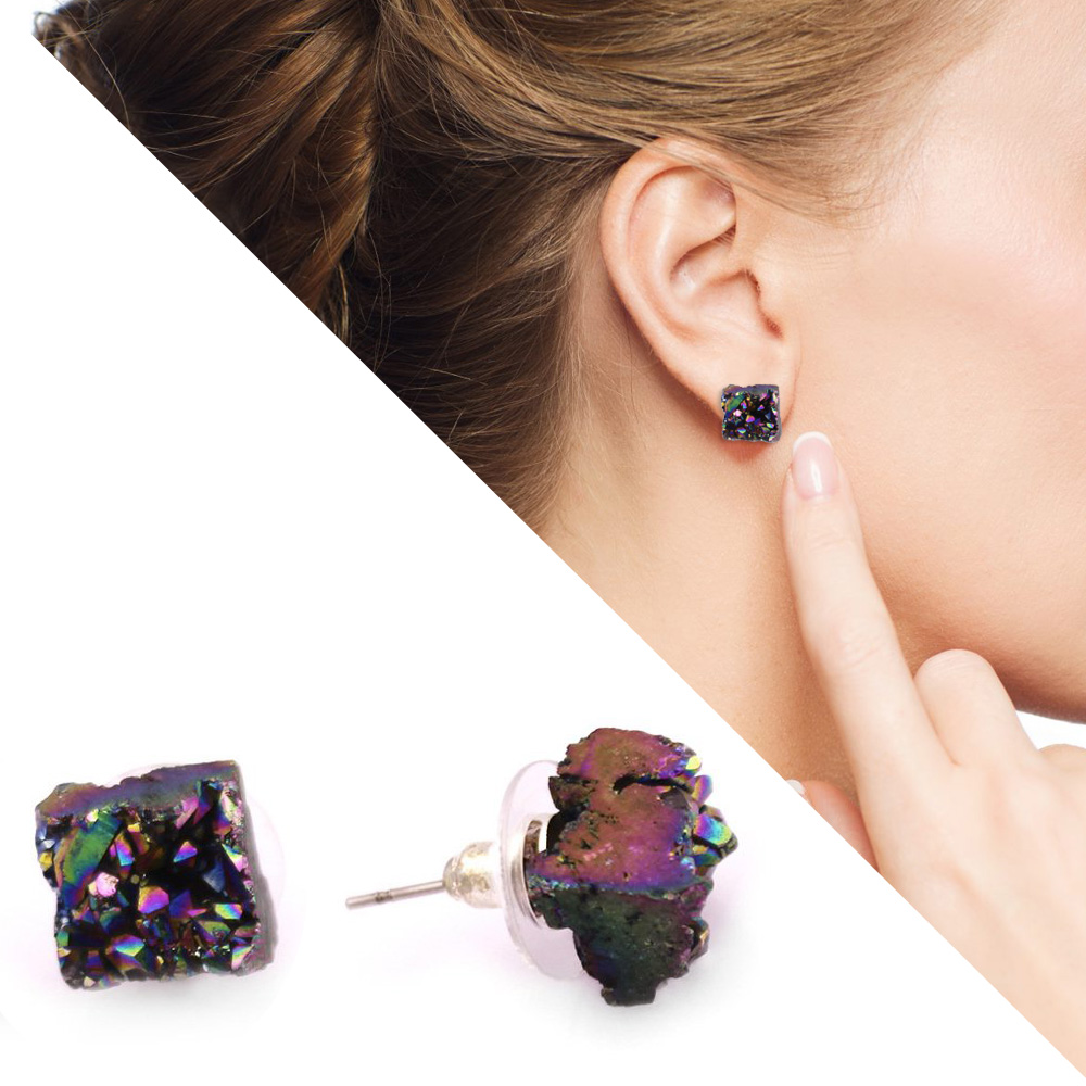 Yanardöner Kristal Doğaltaşlı Dörtgen Tasarım Küpe
