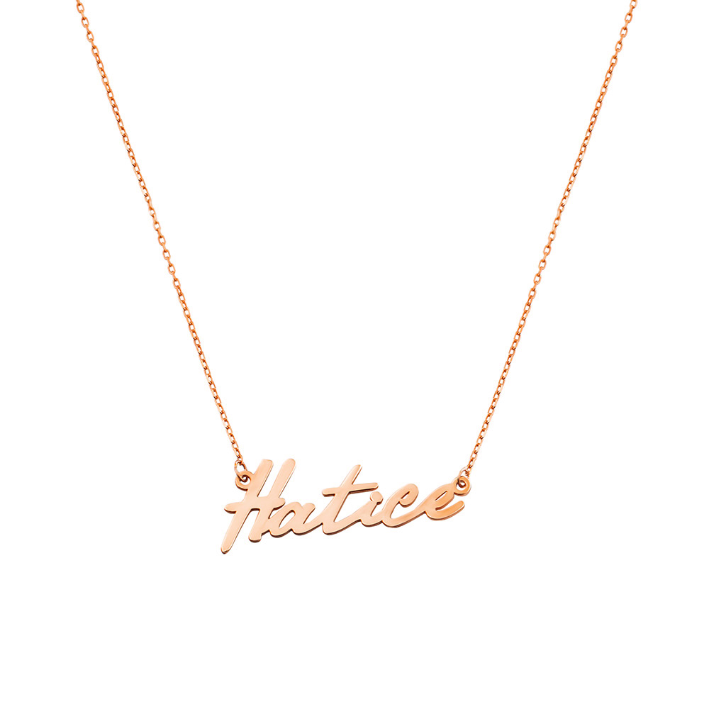 Yatay Tasarım İsme Özel Yazılı Rose Renk 925 Ayar Gümüş Bayan Kolye