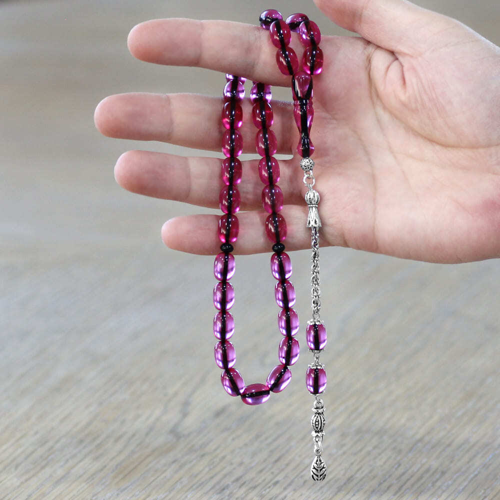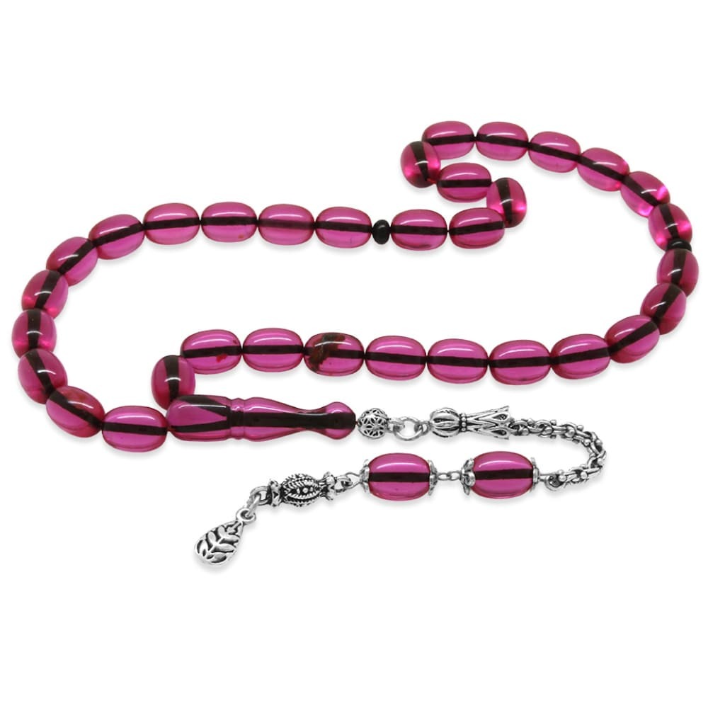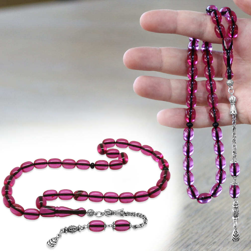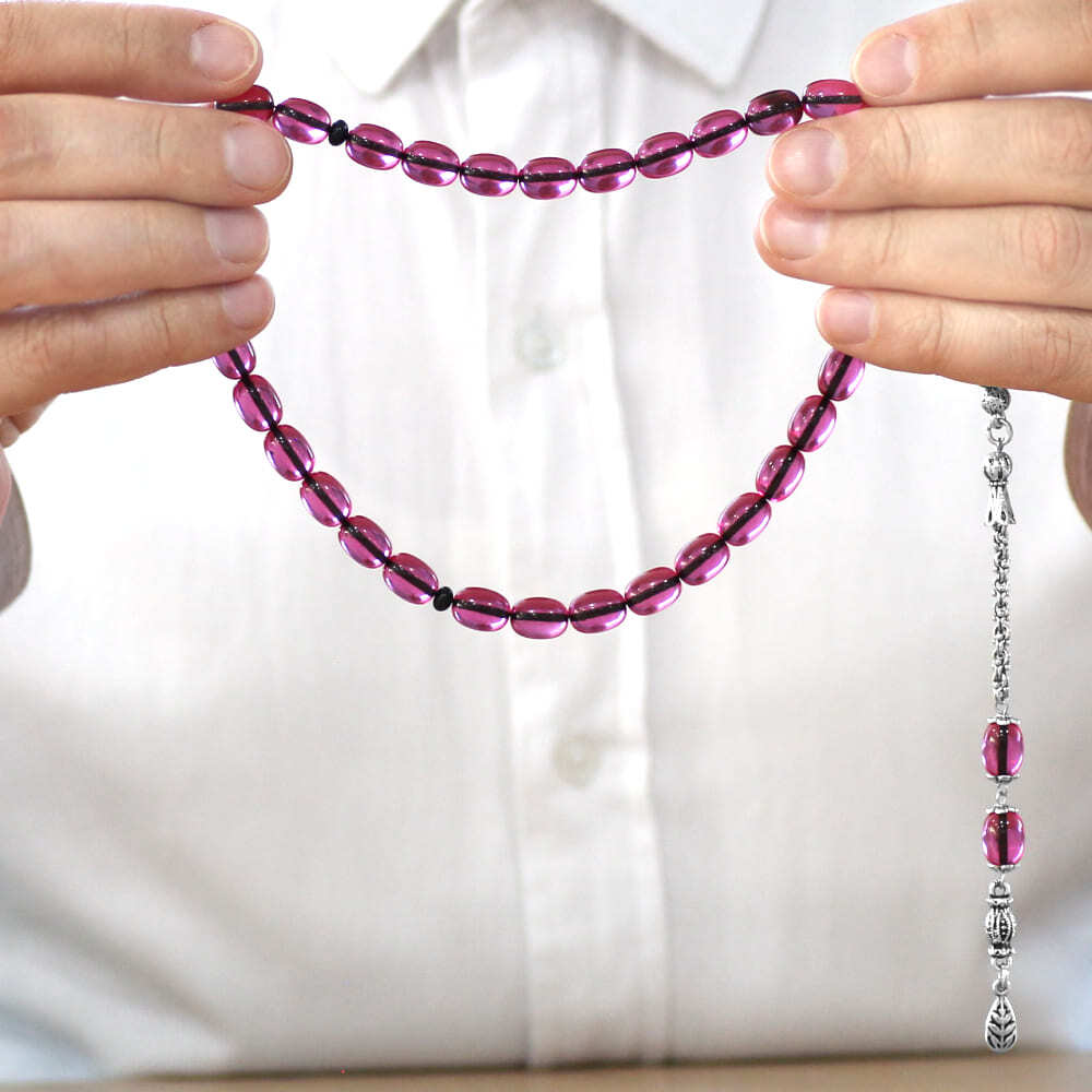 Yeni Döküm Katalin Tesbih - Şeffaf İp Yolu - Kararmaz Metal Püsküllü - Fuşya Renk - Kapsül Kesim
