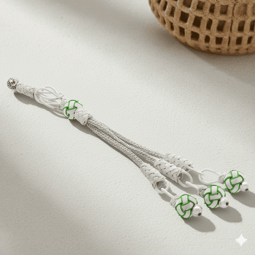 Yeşil Beyaz Renk Bakır Kaplama Üçlü Top Kazaz Püskül